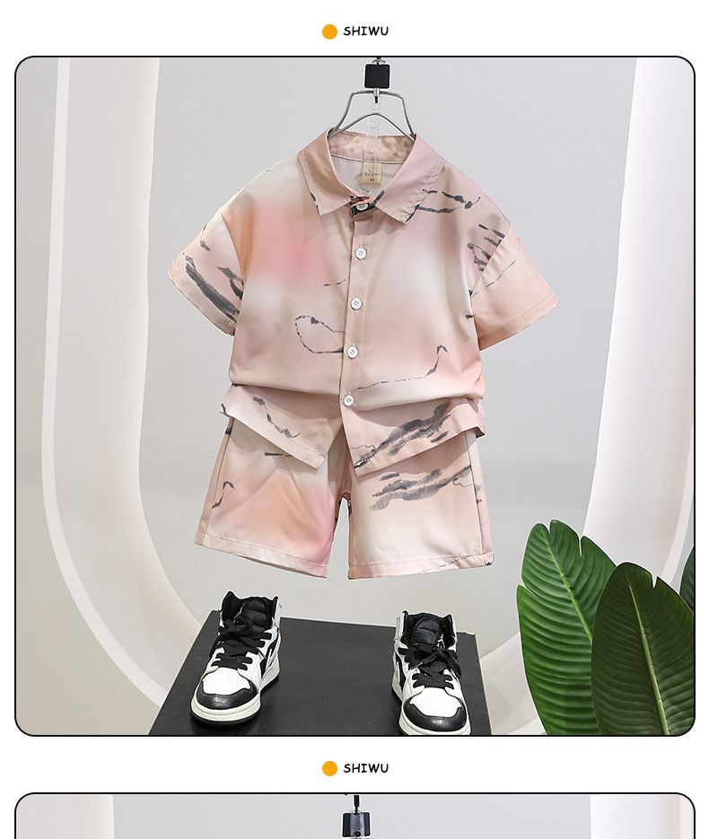 남자들의 여름 반팔 세트 새로운 잘 생긴 어린이 여름 옷 어린이 아기 셔츠 투피스 유행 세트스토어 가기