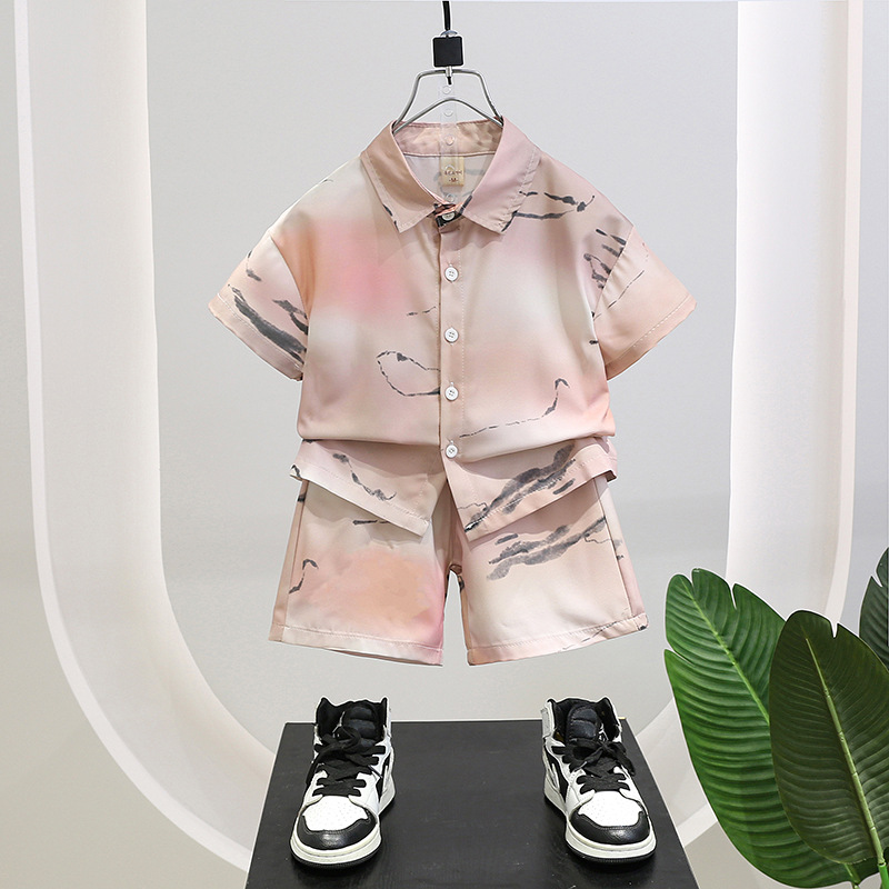 남자들의 여름 반팔 세트 새로운 잘 생긴 어린이 여름 옷 어린이 아기 셔츠 투피스 유행 세트