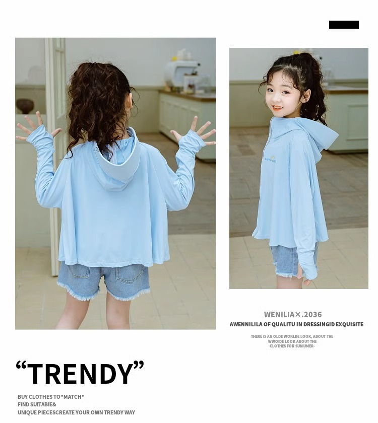 소녀 선스크린 의류 여름 2025 새로운 아이스 실크 어린이 경량 재킷 통기성 아기 에어컨 의류 서양식 트렌디스토어 가기