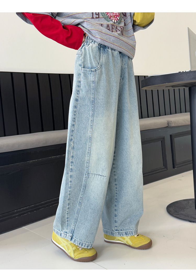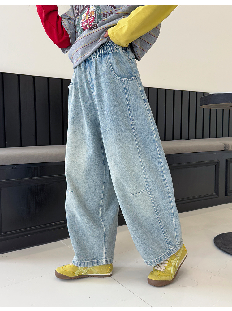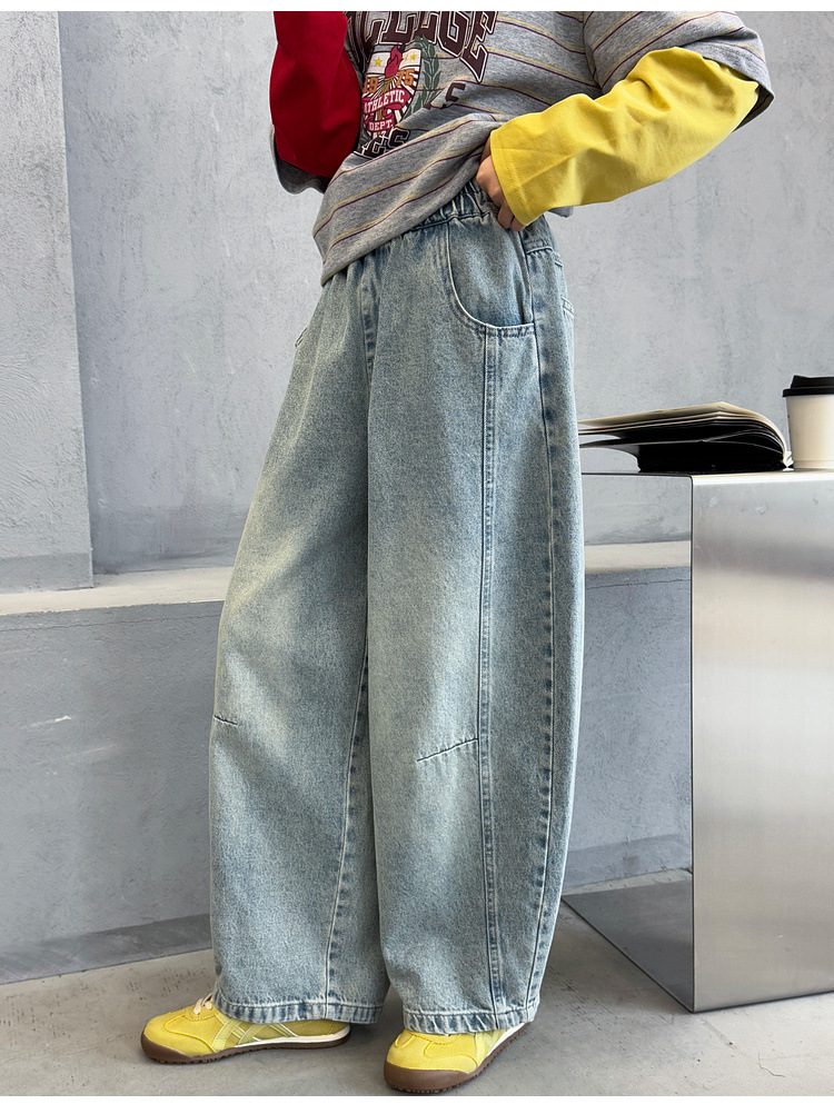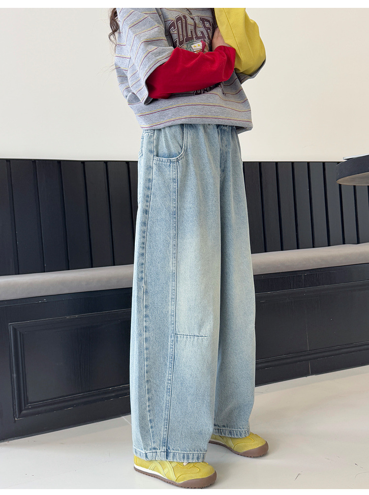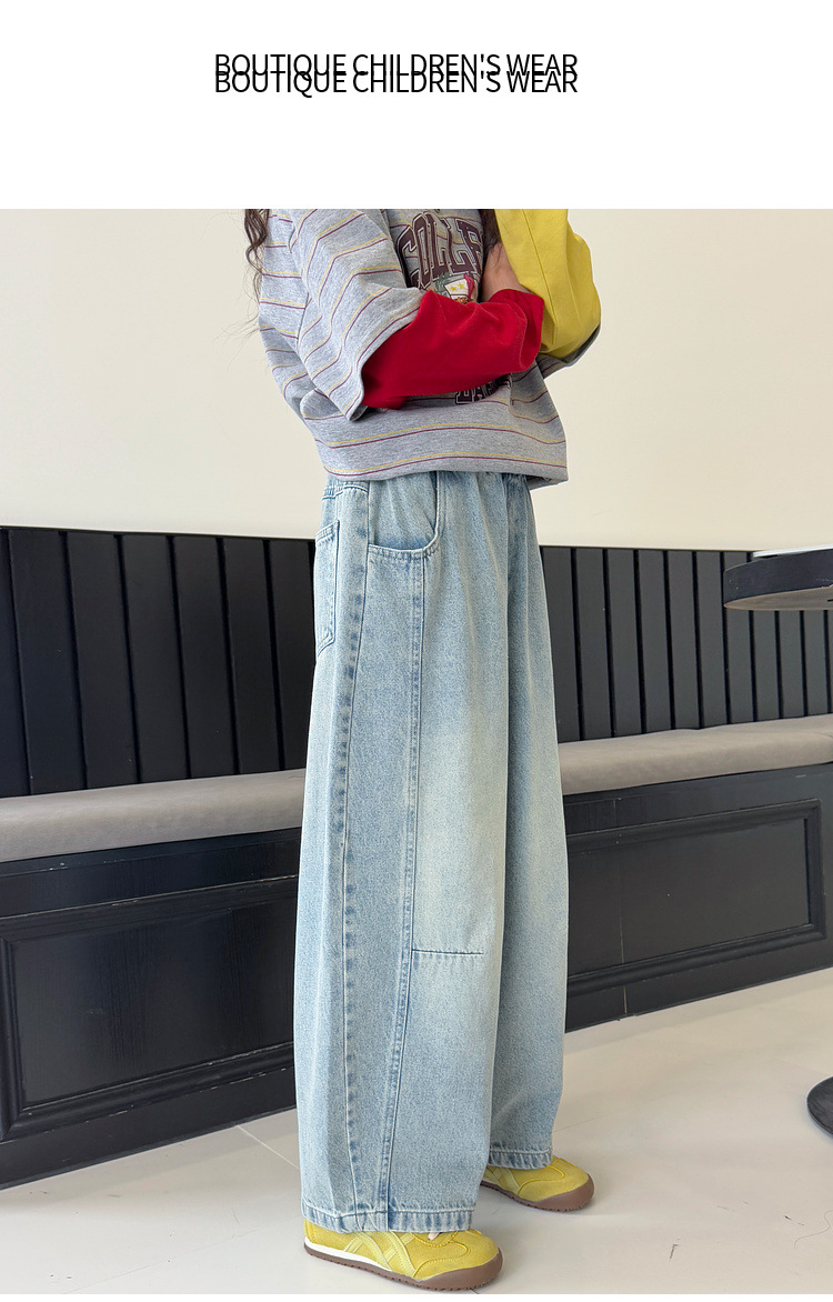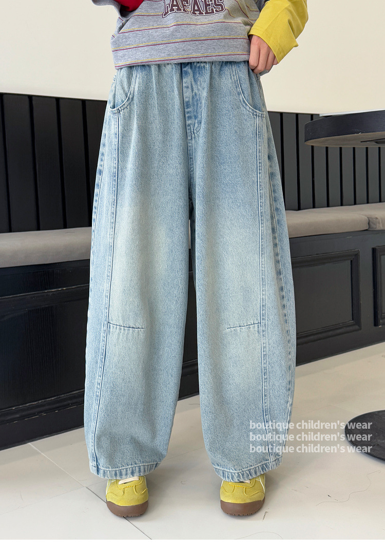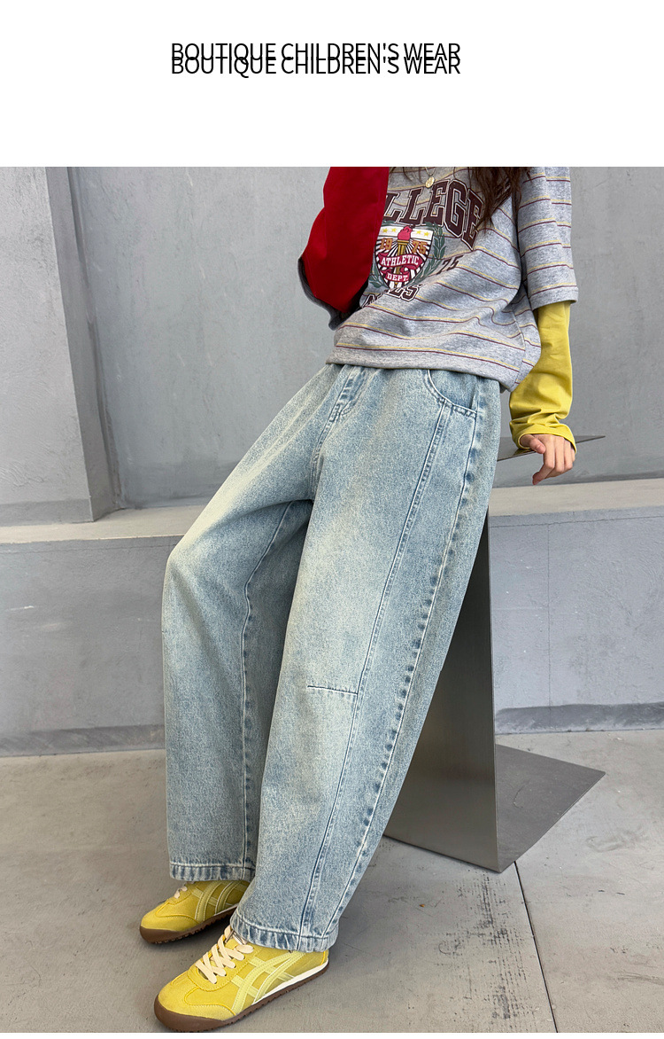 여아용 청바지 아동 바지 봄옷 2026 신상품 커브드 팬츠 봄가을 큰아이 캐주얼 워싱 데님 롱팬츠스토어 가기