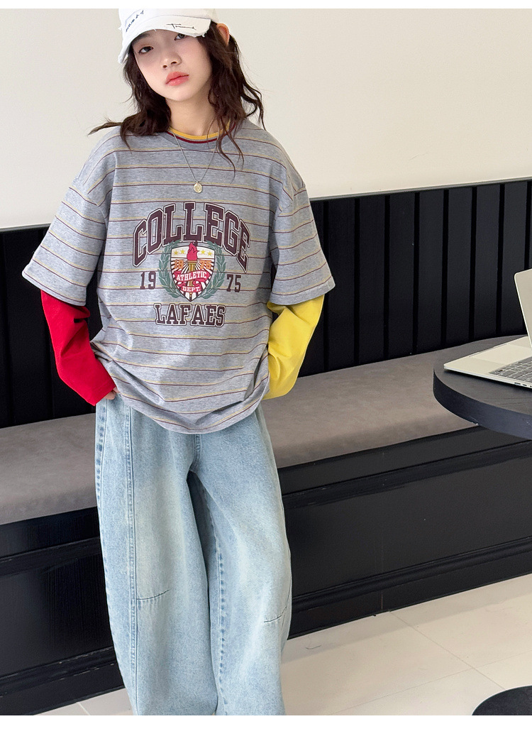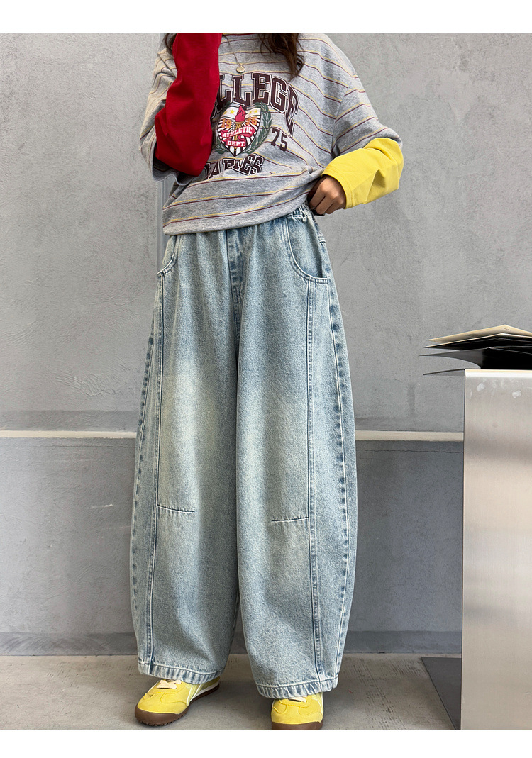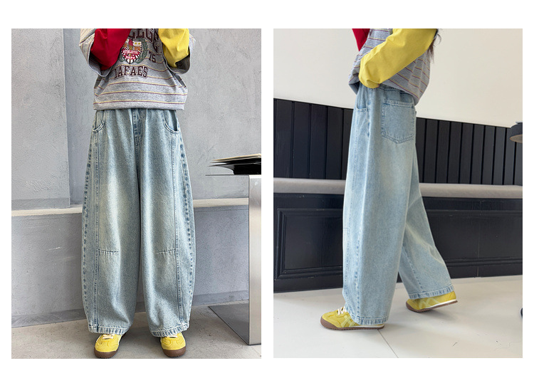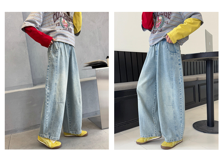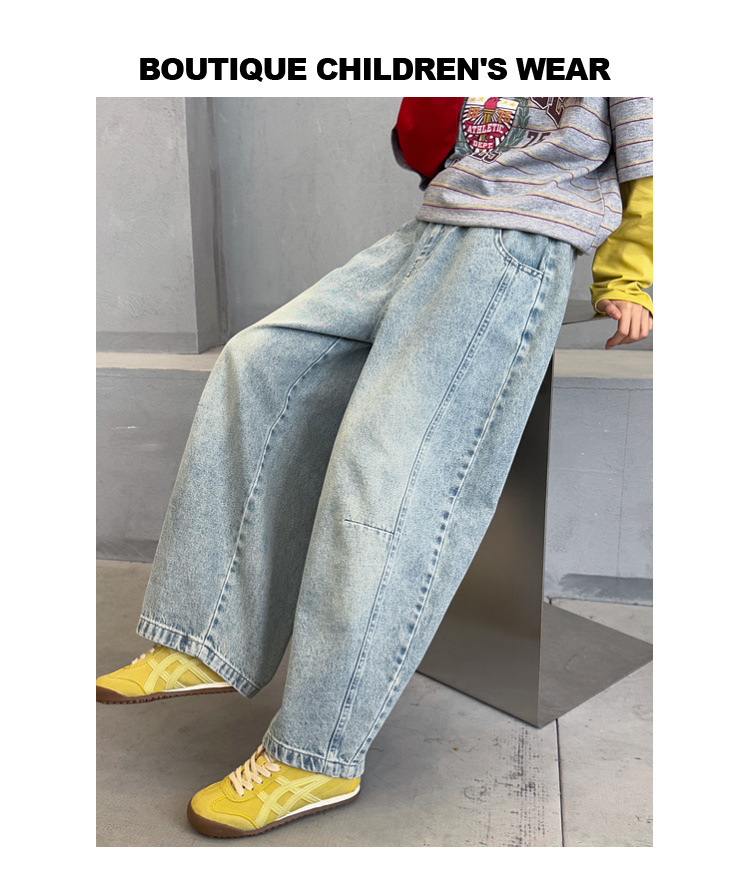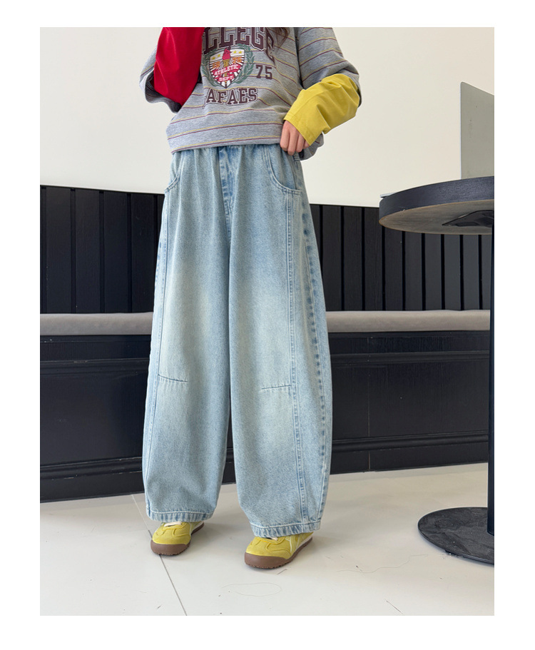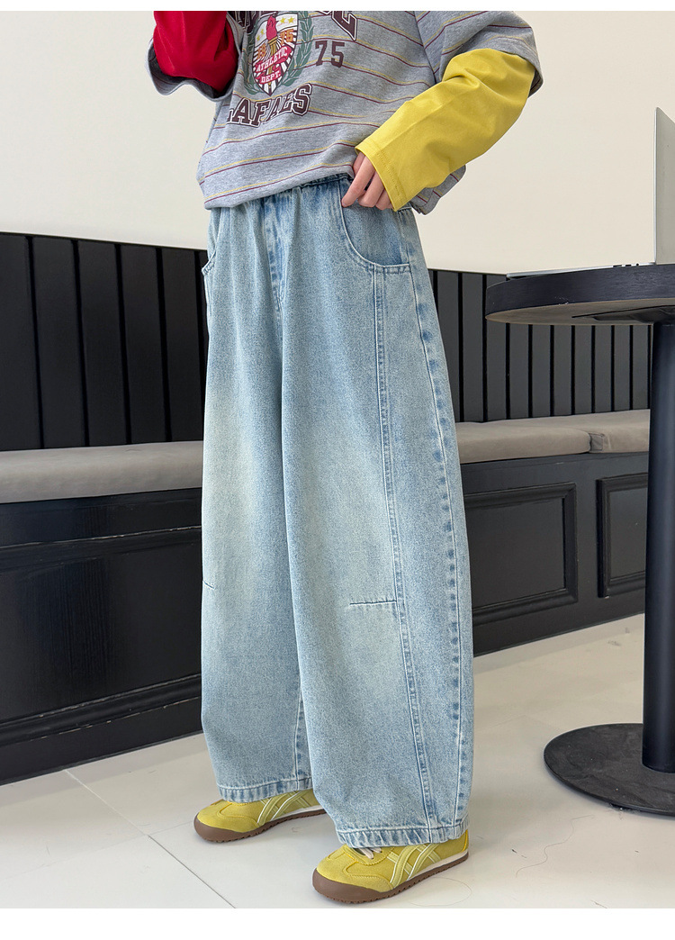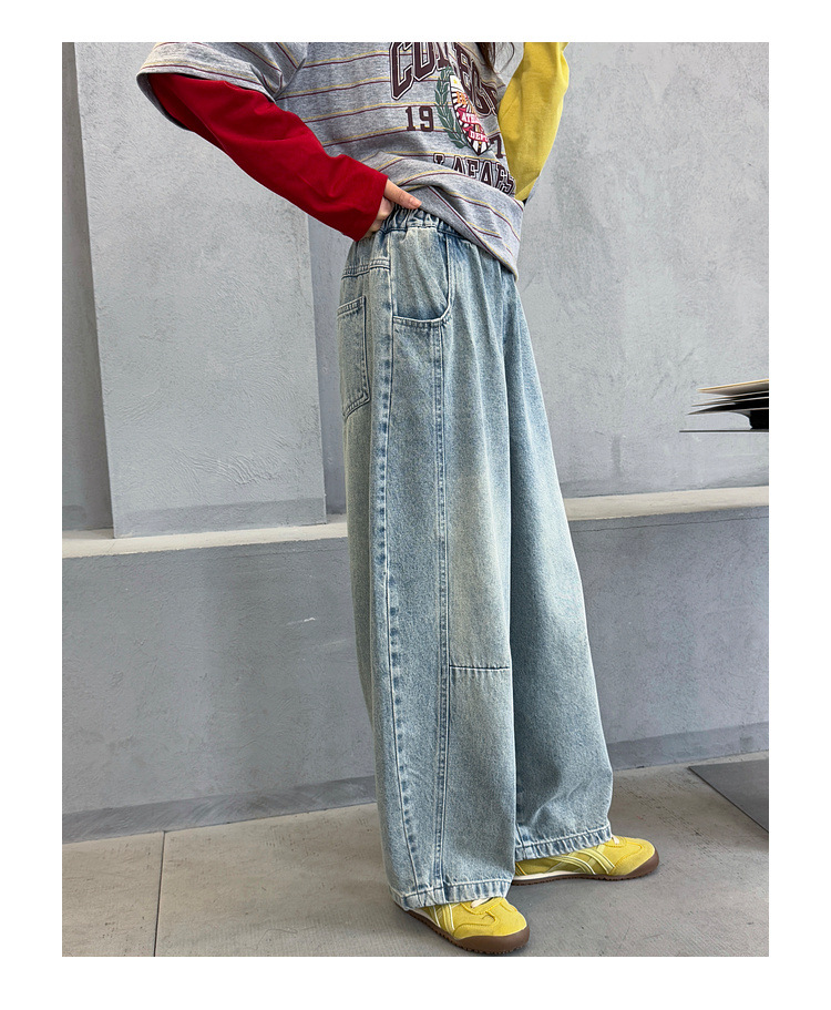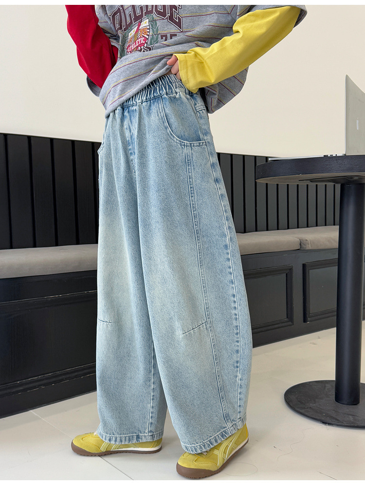 여아용 청바지 아동 바지 봄옷 2026 신상품 커브드 팬츠 봄가을 큰아이 캐주얼 워싱 데님 롱팬츠스토어 가기
