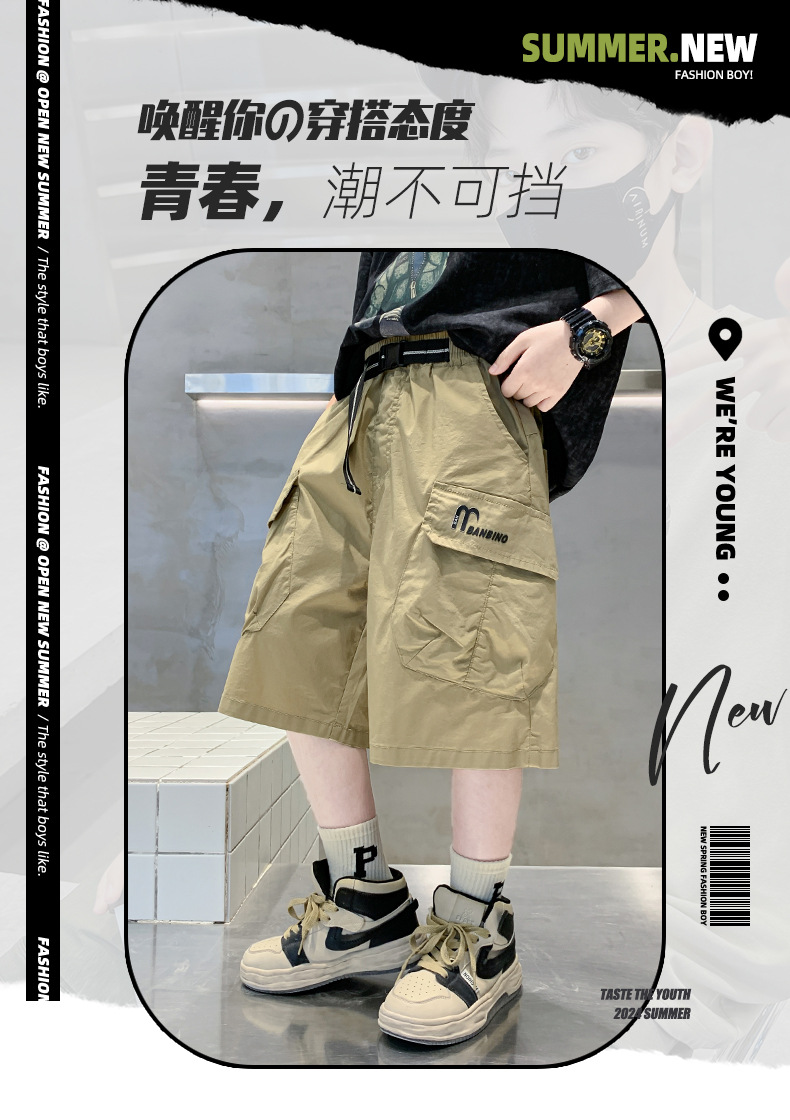 남자들의 여름 잘 생긴 캐주얼 작업복 중간 길이 바지 여름 큰 어린이 소년 유행 편지 5-6 바지스토어 가기