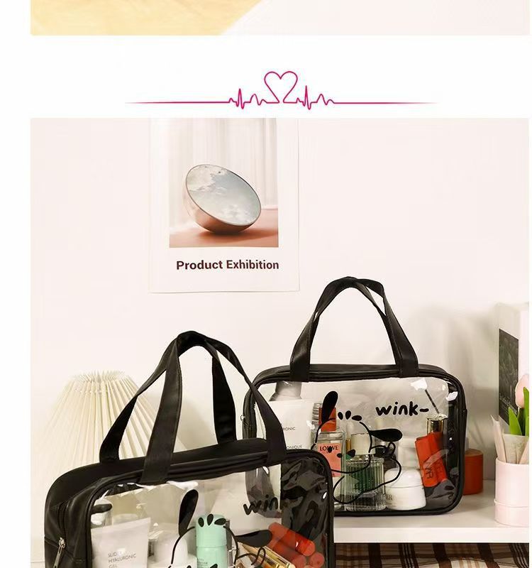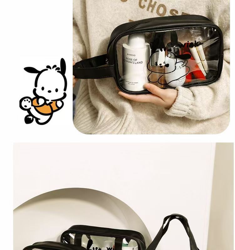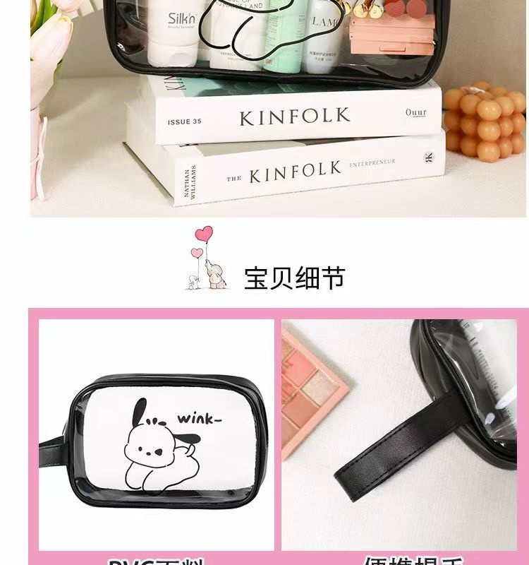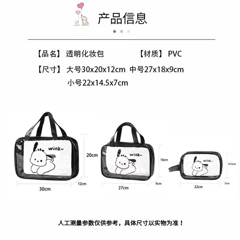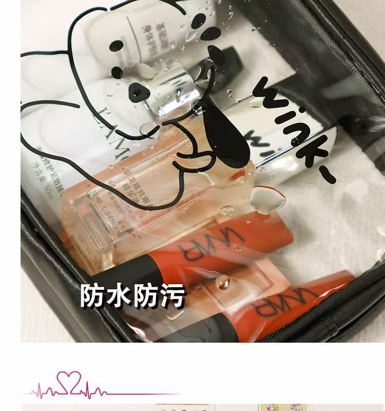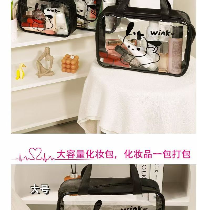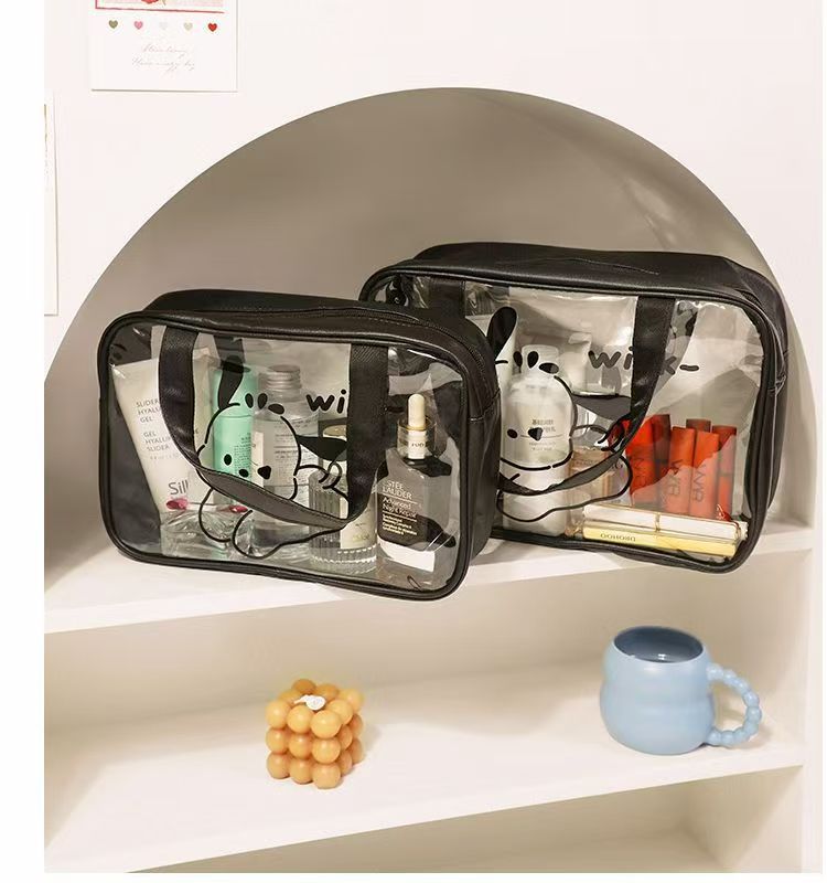 2024 새로운 높은 컬러 화장품 가방 PVC 방수 만화 저장 가방 여성 휴대용 핸드백