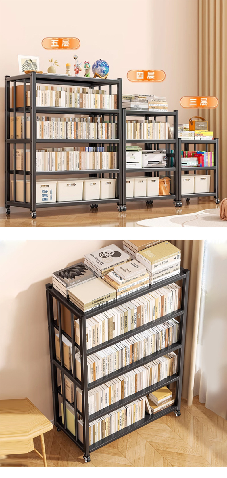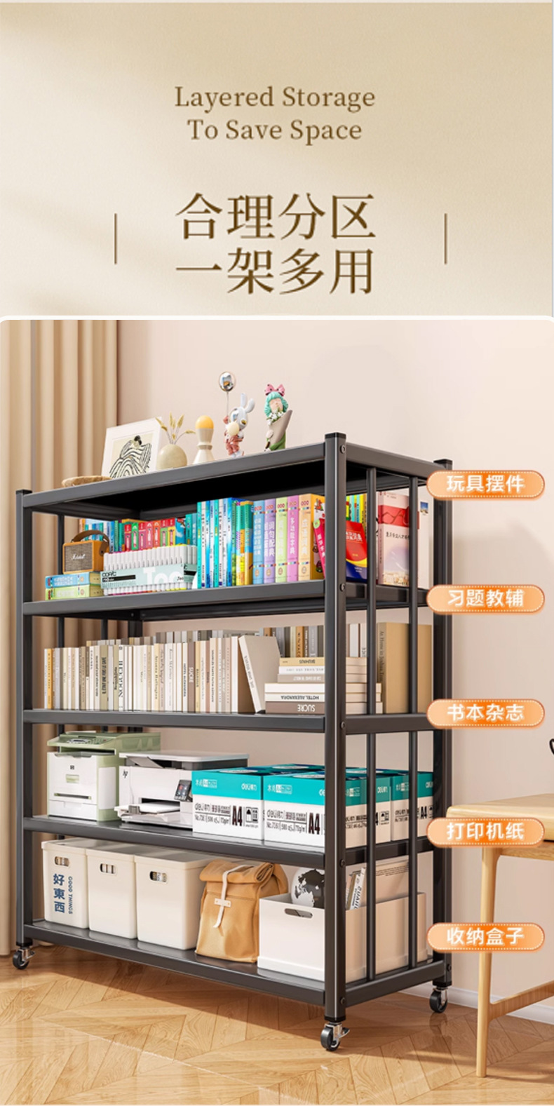 책장 선반 다층 가정용 거실 수납 선반 이동식 전시용 책장 간단한 그림책 수납 선반