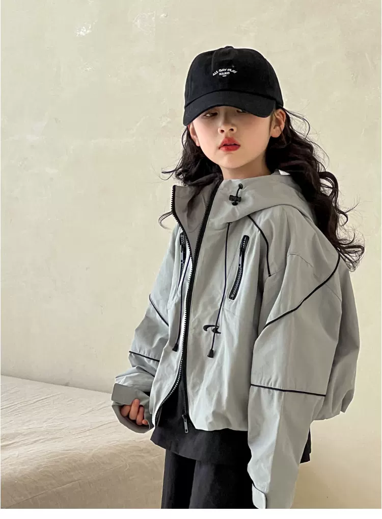 작은 붉은 물고기 소녀 코트 봄과 가을 2025 새로운 어린이 바람막이 소녀 재킷 캐주얼 재킷스토어 가기
