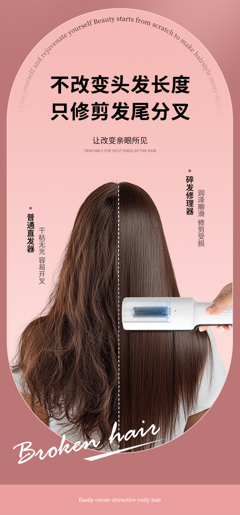 분기 된 헤어 트리머 헤어 테일 슈레더 분기 된 전기 자동 헤어 트리밍 자동 네거티브 이온 헤어 트리머