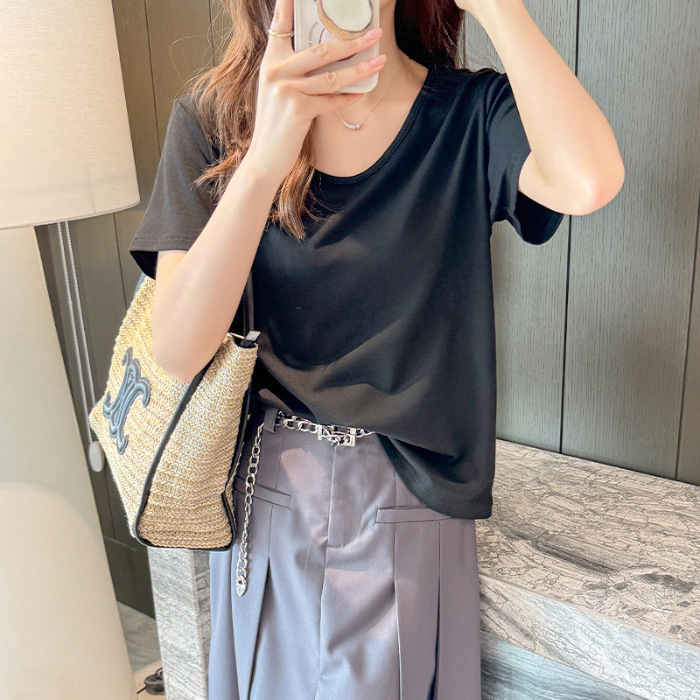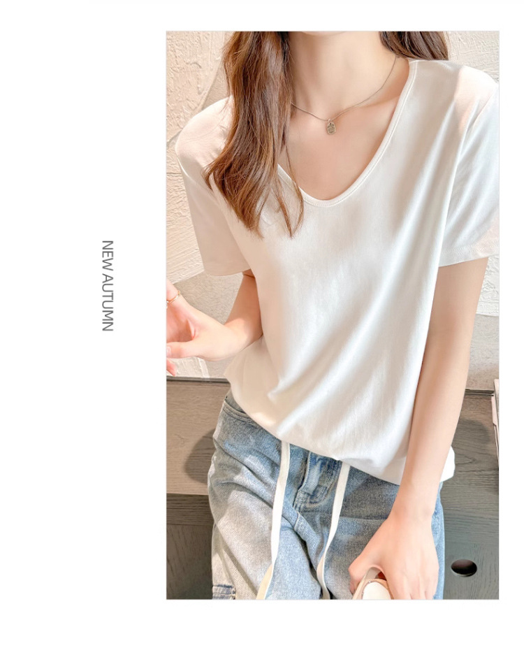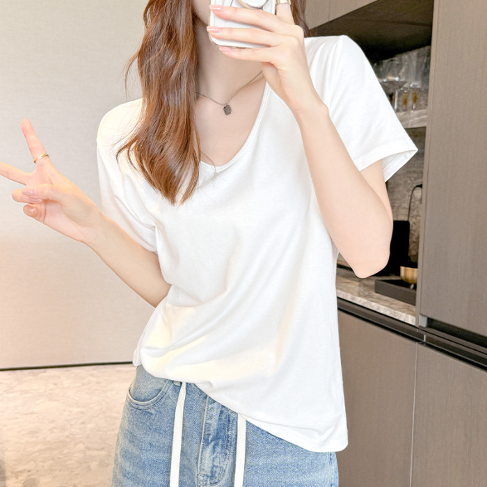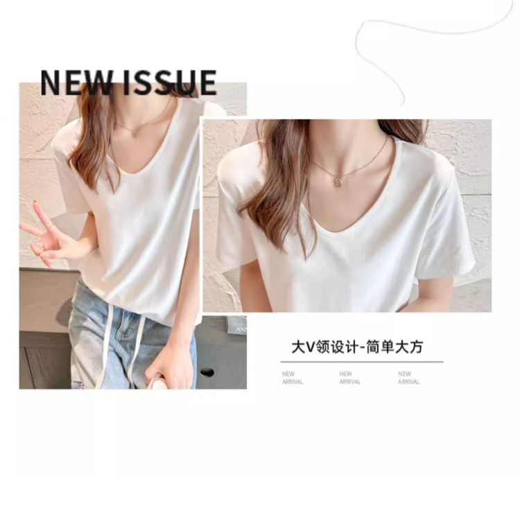 국경 간 TEMU Xiyin 여름 240 그램의 더블 실 V 넥 플러스 사이즈 넓은 느슨한 어깨 여성용 반팔 티셔츠