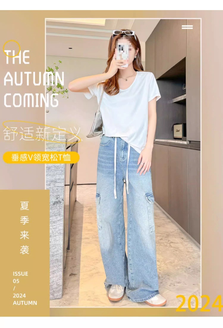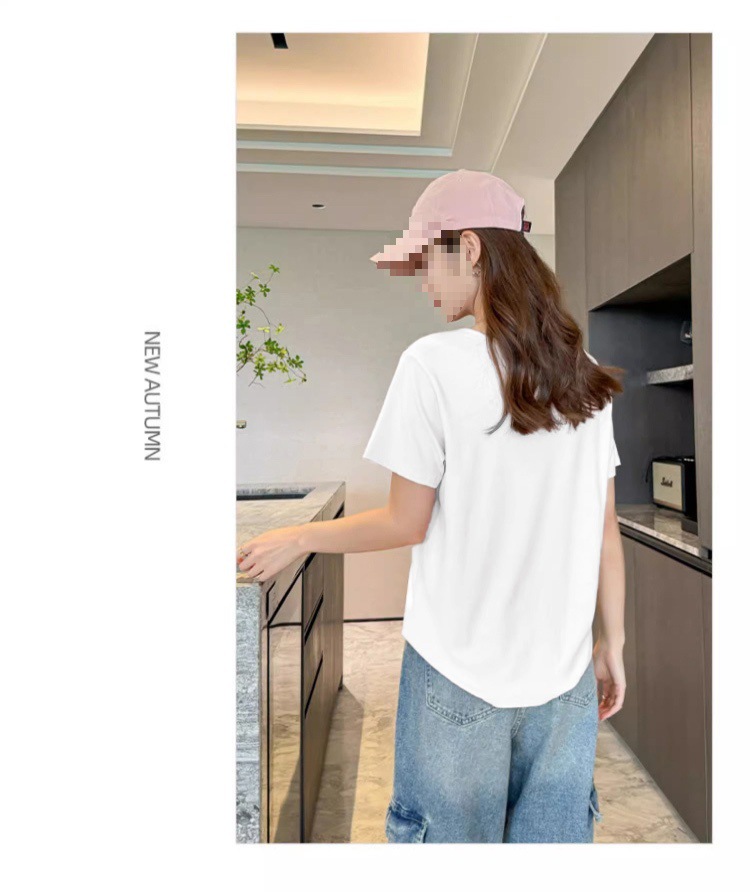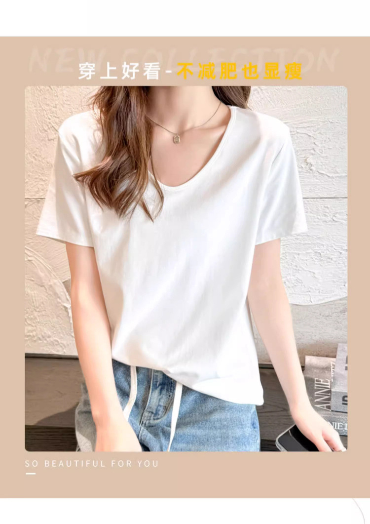 국경 간 TEMU Xiyin 여름 240 그램의 더블 실 V 넥 플러스 사이즈 넓은 느슨한 어깨 여성용 반팔 티셔츠스토어 가기