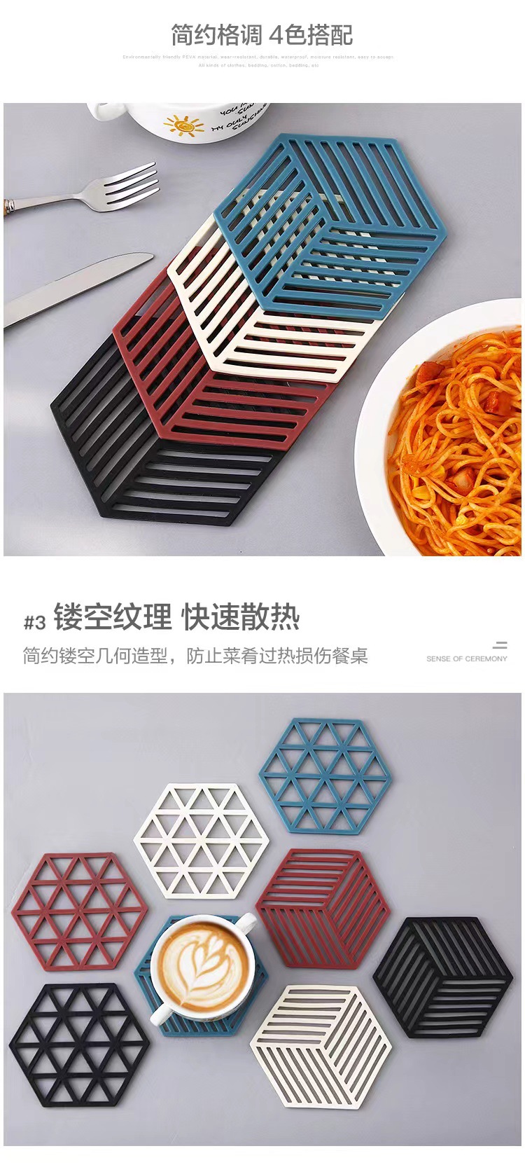 크리 에이 티브 할로우 육각형 실리콘 다이닝 매트 단열 매트 북유럽 안티 스케일링 매트 매트 가정용 레스토랑 주방 코스터