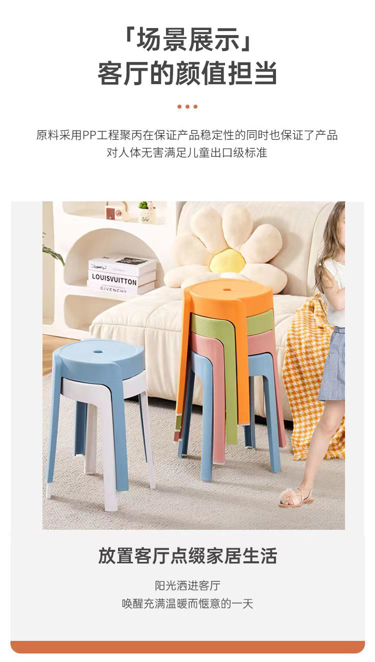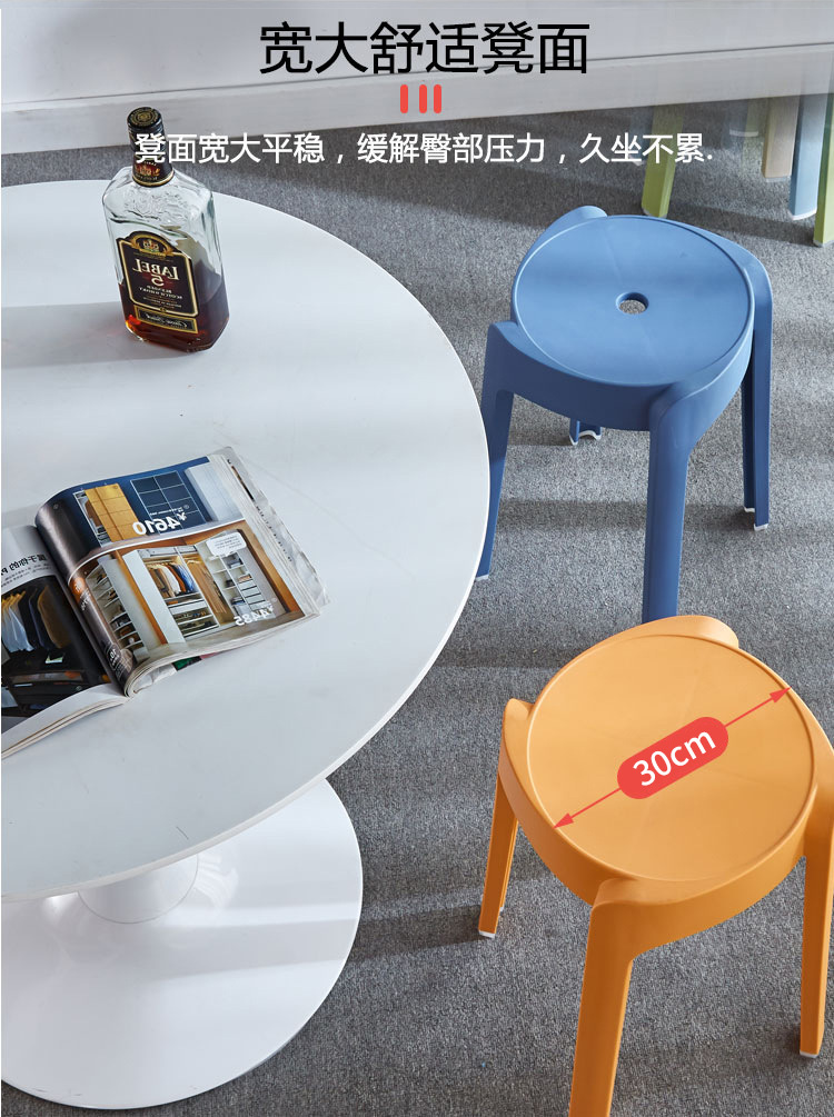 두꺼운 플라스틱 의자 가정용 조리 접착제 간단한 식탁 및 의자 높은 의자 쌓을 수있는 의자 거실 작은 둥근 의자 스마트 하이 라운드스토어 가기