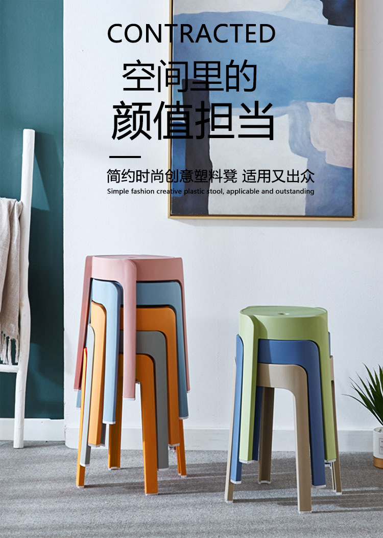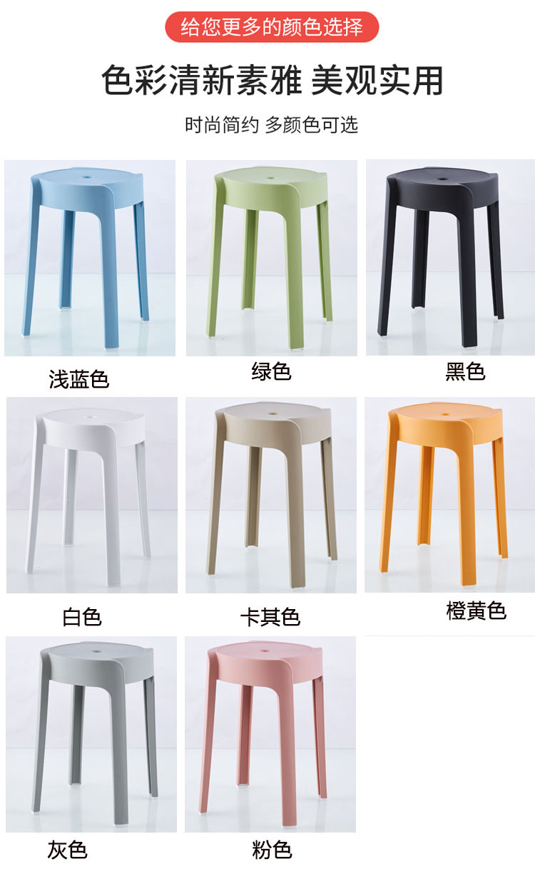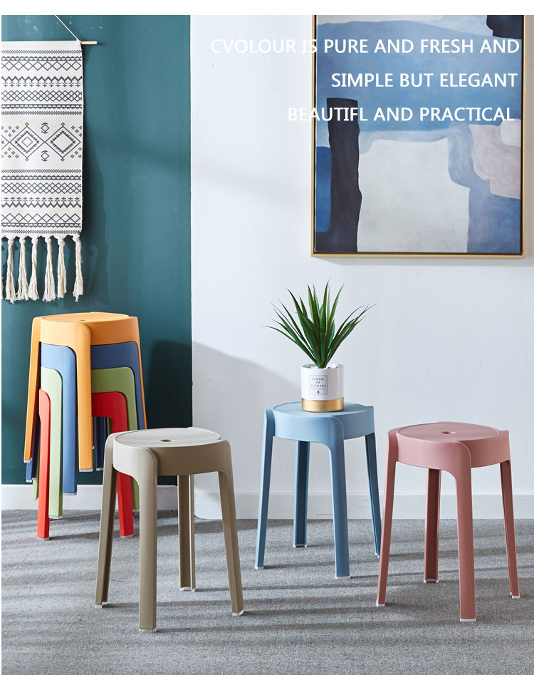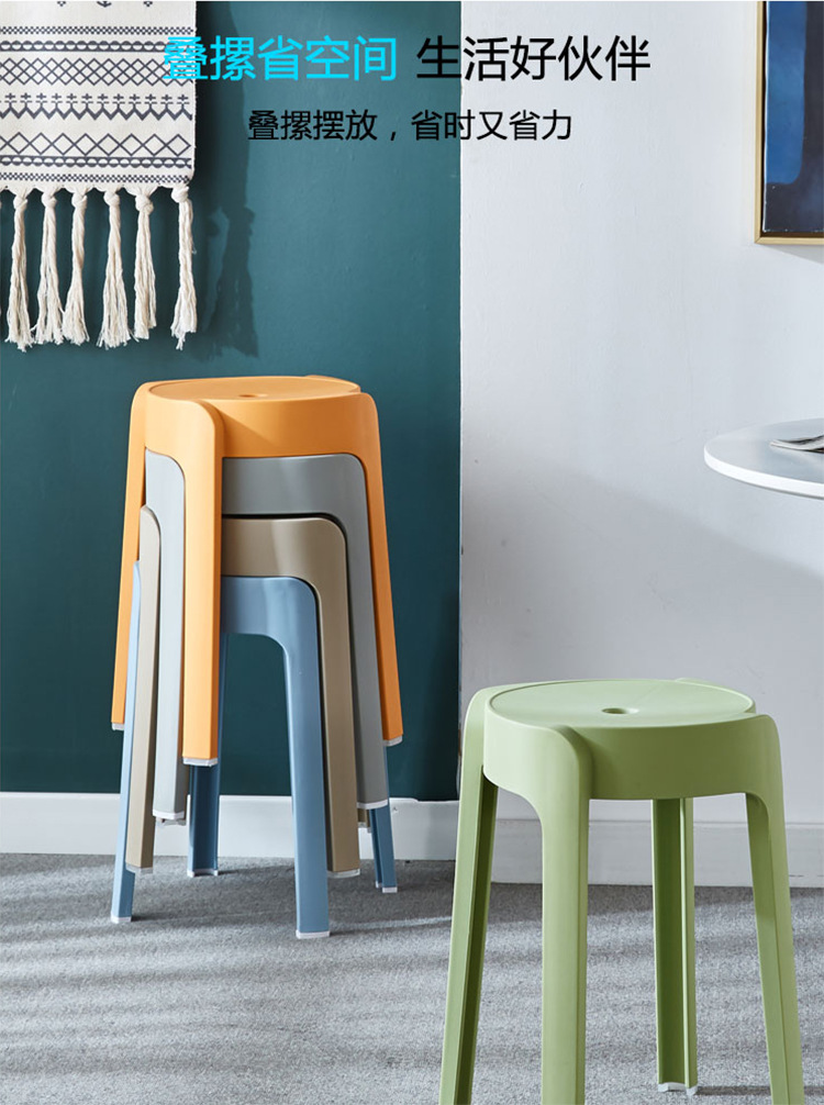 두꺼운 플라스틱 의자 가정용 조리 접착제 간단한 식탁 및 의자 높은 의자 쌓을 수있는 의자 거실 작은 둥근 의자 스마트 하이 라운드