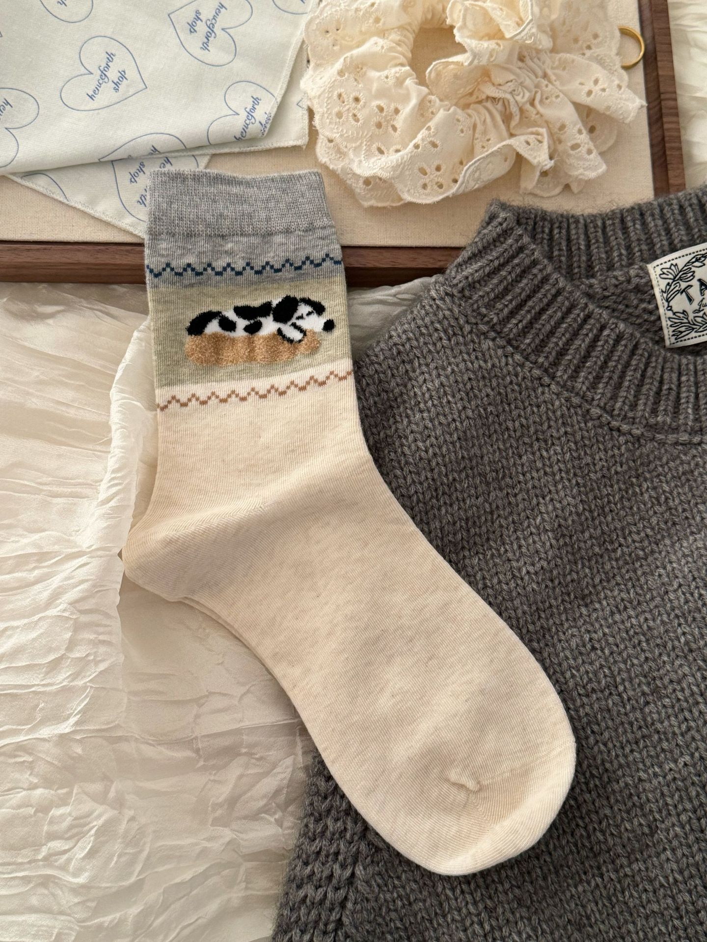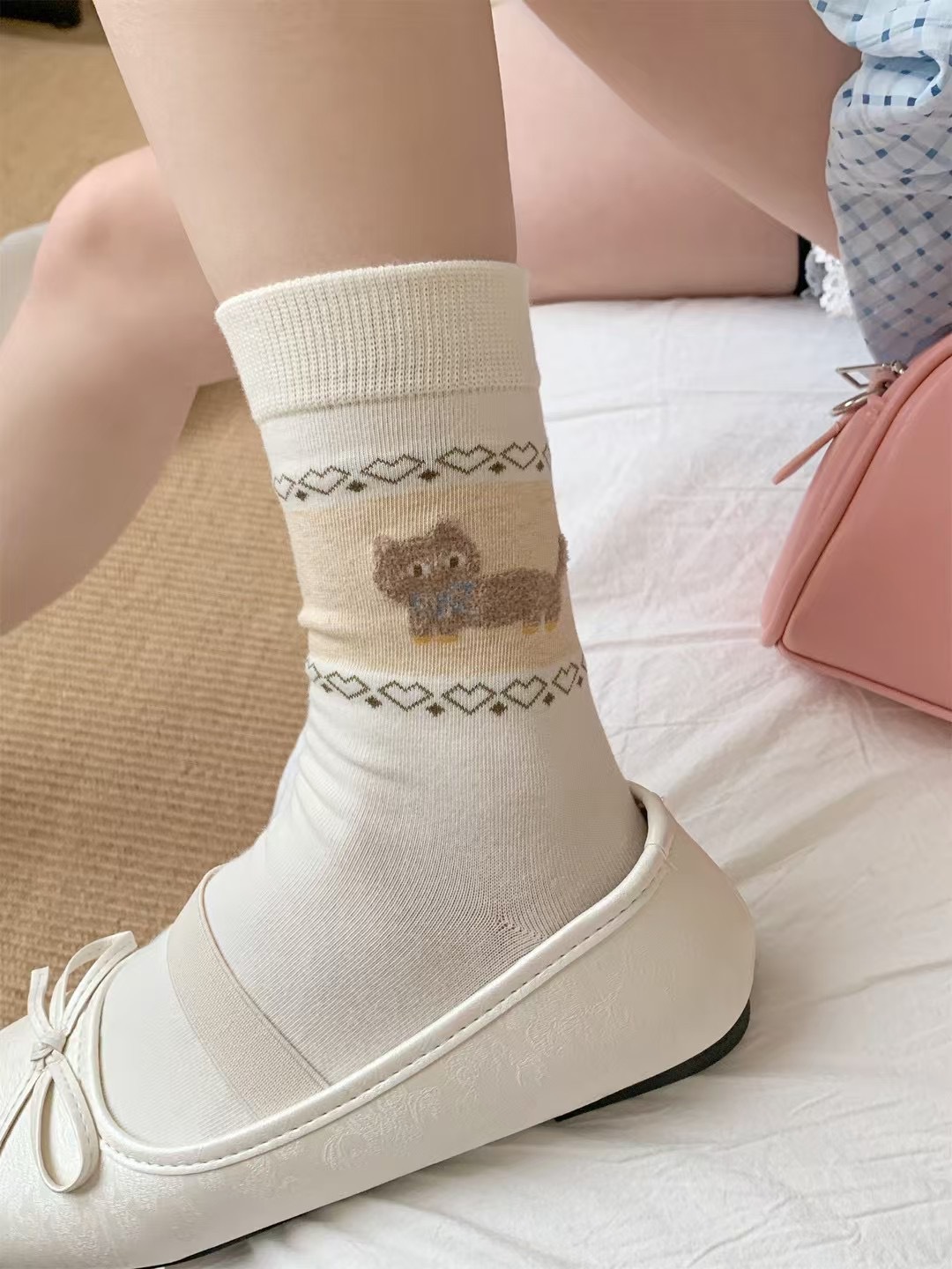 동물 공원 만화 페어랜드 일본식 일러스트 시리즈 양말 어린이 한국 스타일 스택 양말 면 양말 학술 스타일