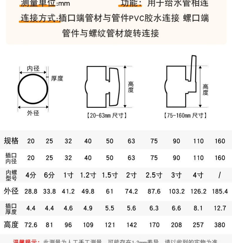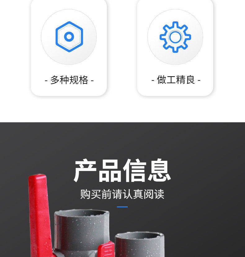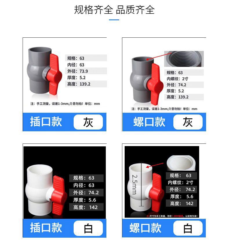PVC 볼 밸브 밸브 스위치 스레드 입 플라스틱 물 공급 파이프 피팅 20 25 32 40 50 63 75 90