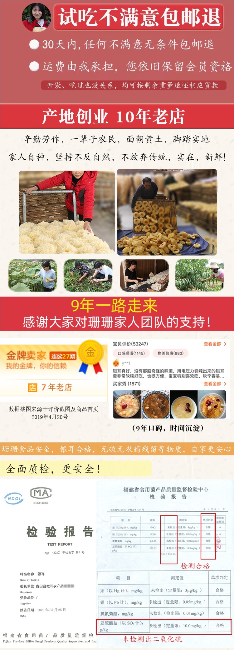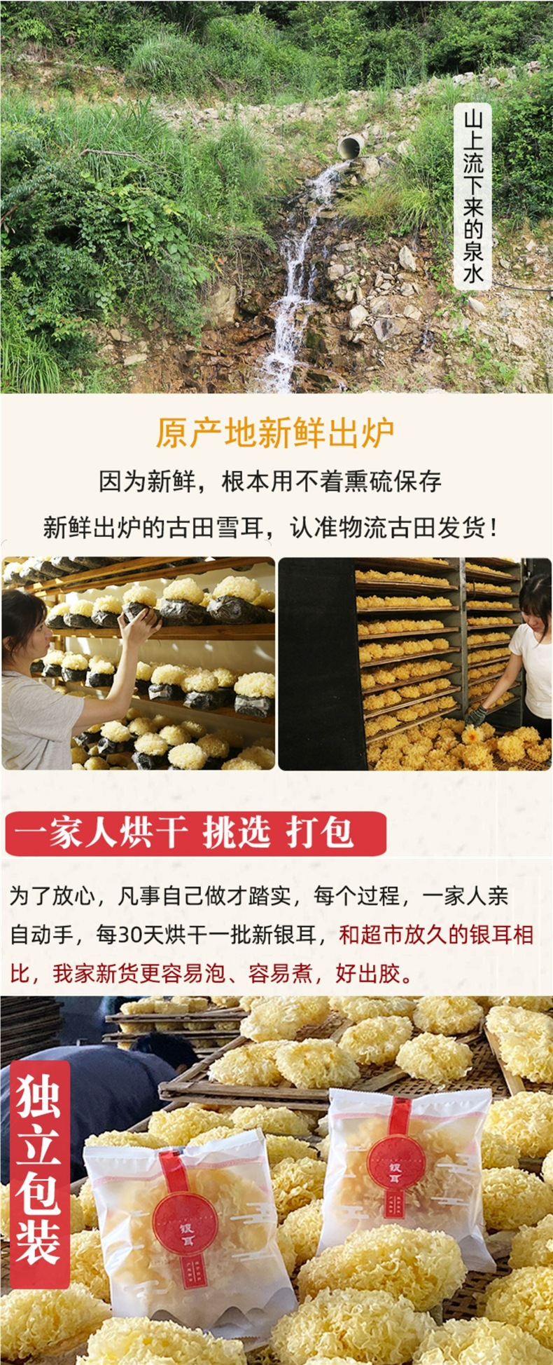 500g 푸젠 구티 안 (Fujian Gutian) 은 생산하기 쉬운 백색 곰팡이 건조 제품 유황이없는 임산부 눈 귀 찹쌀 균류 연꽃 씨앗 수프 비 등급 야생스토어 가기