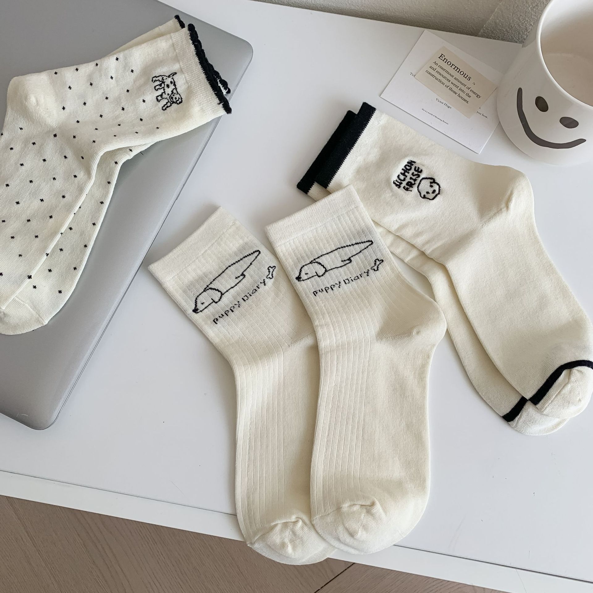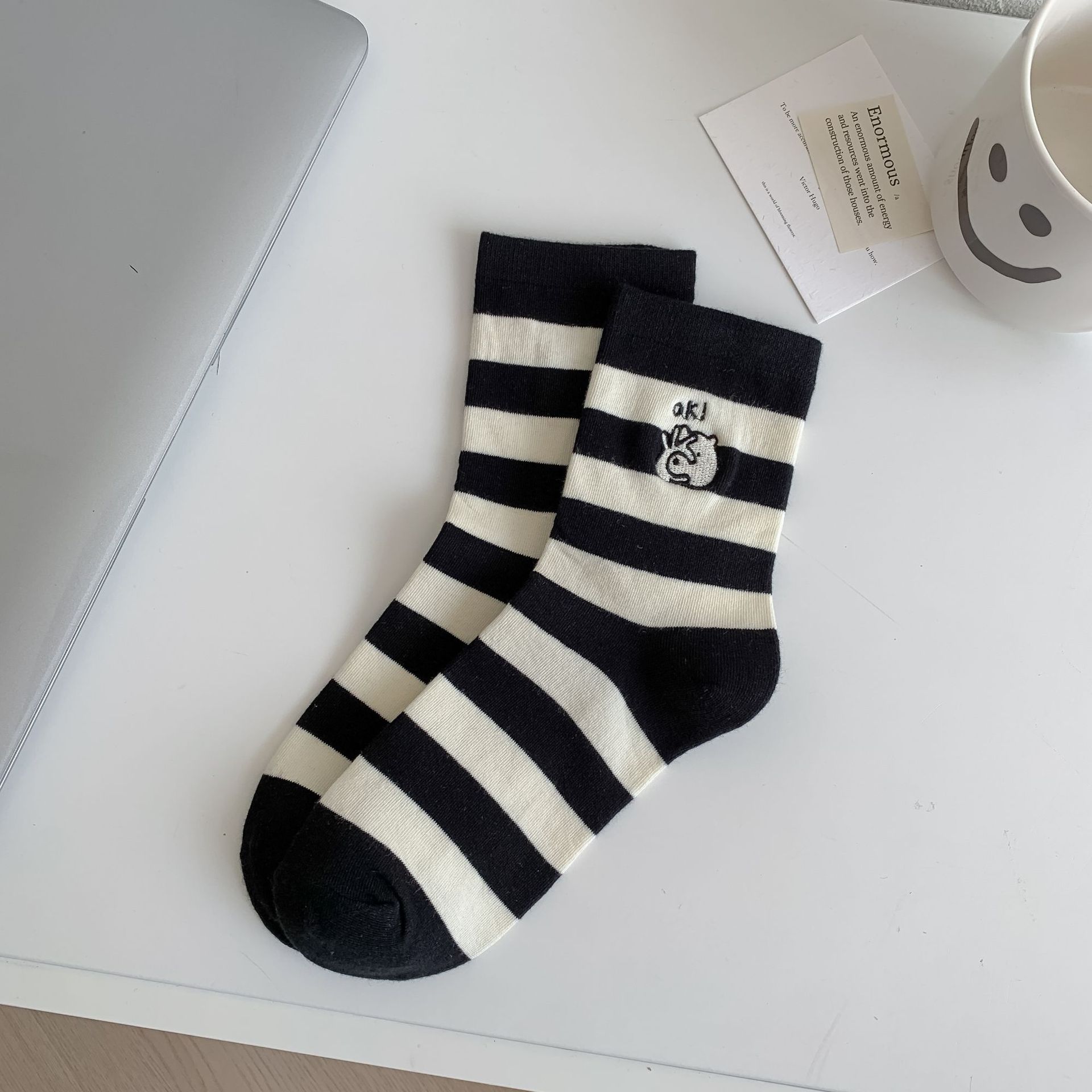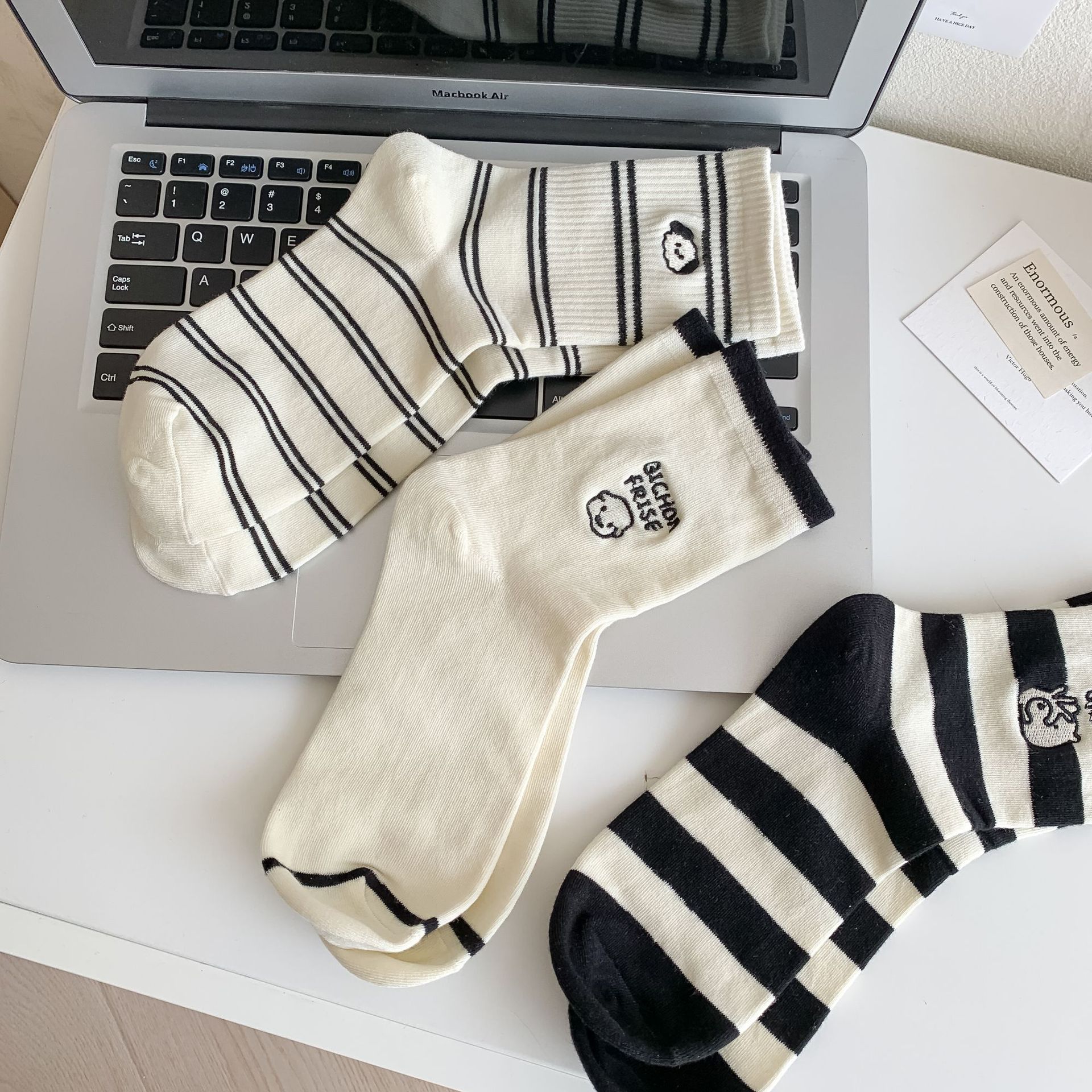 줄무늬 만화 강아지 양말 여성용 중간 길이 양말 인스 트렌드 봄 가을 스타일 무봉제 일본식 귀여운 스포츠 겨울 긴 양말스토어 가기