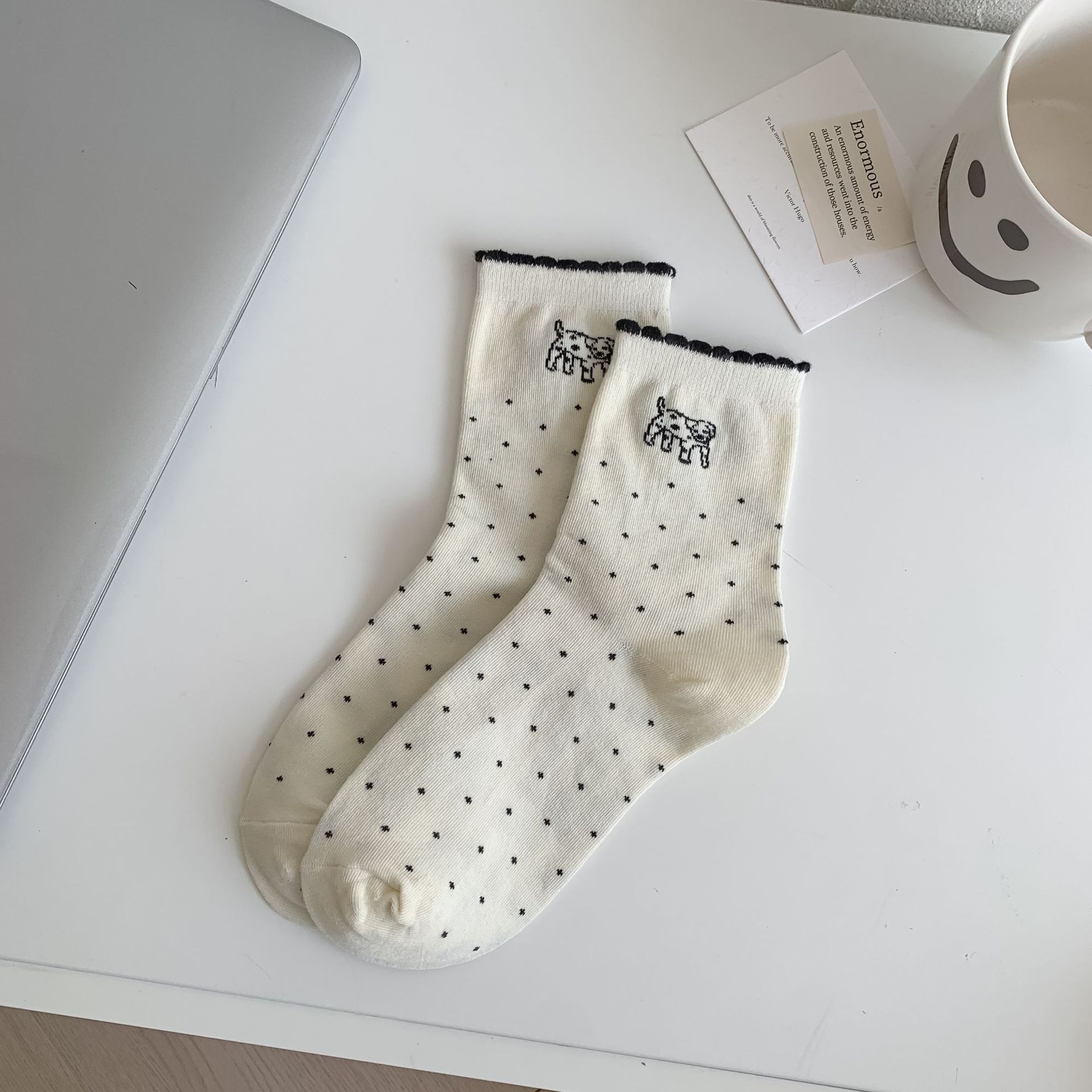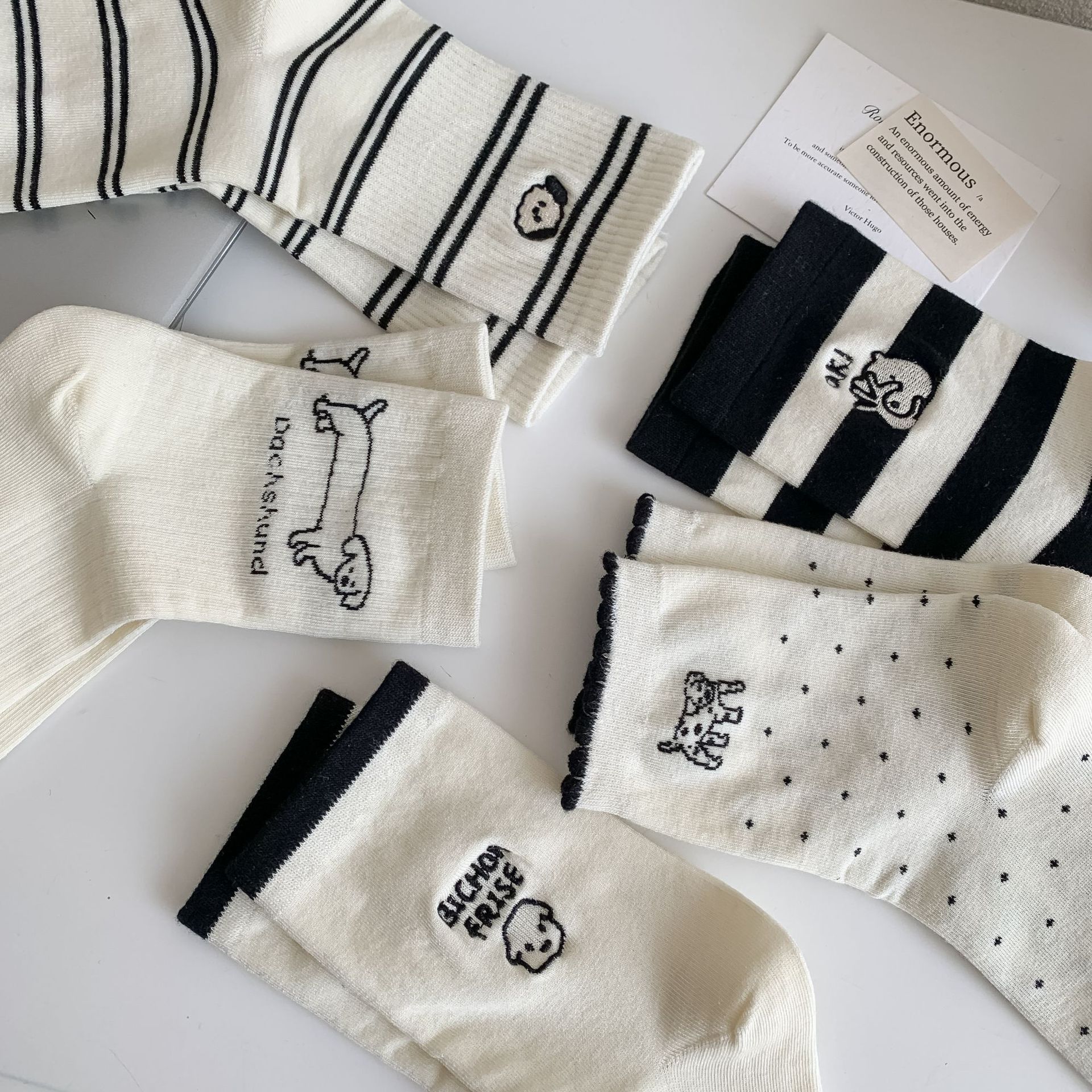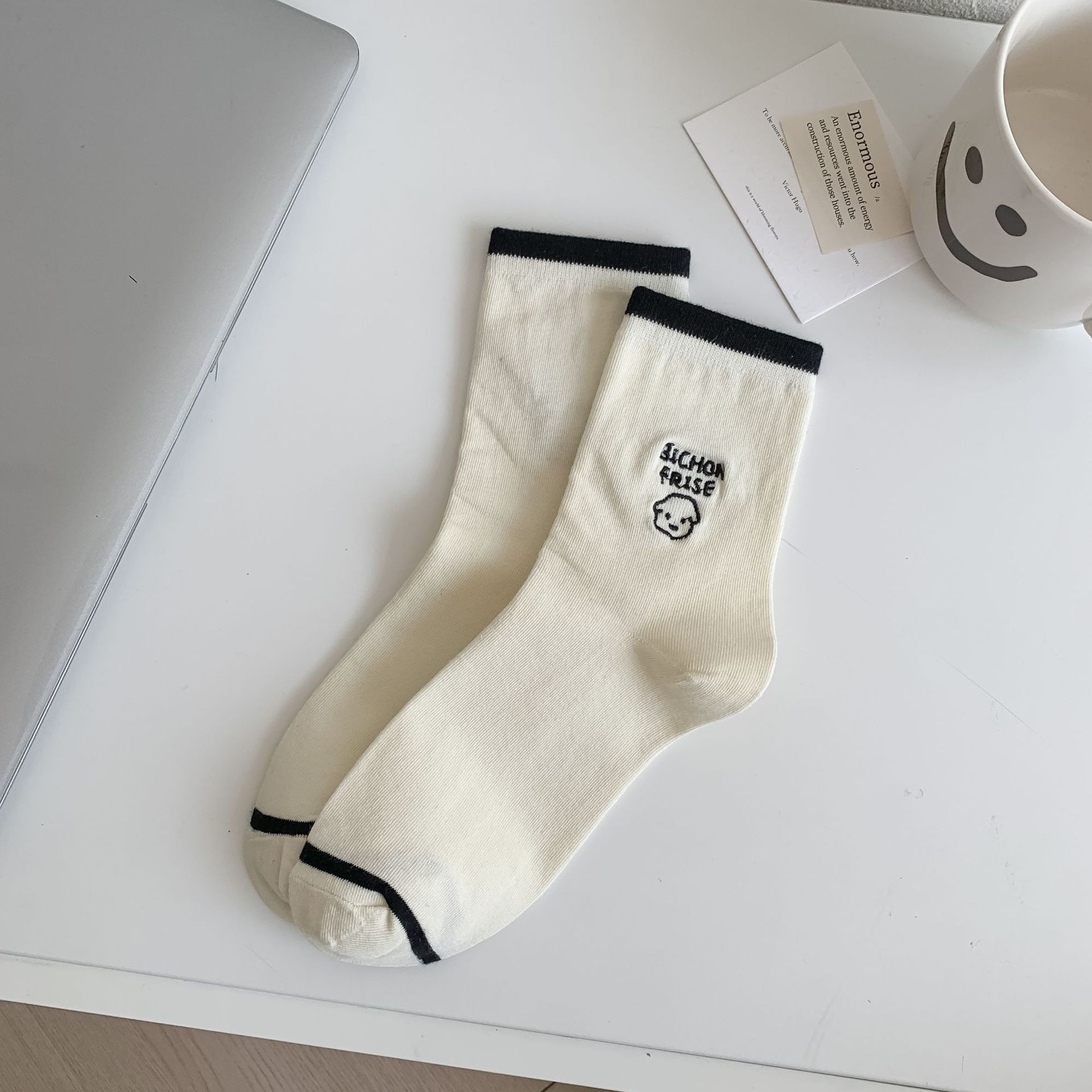 줄무늬 만화 강아지 양말 여성용 중간 길이 양말 인스 트렌드 봄 가을 스타일 무봉제 일본식 귀여운 스포츠 겨울 긴 양말스토어 가기