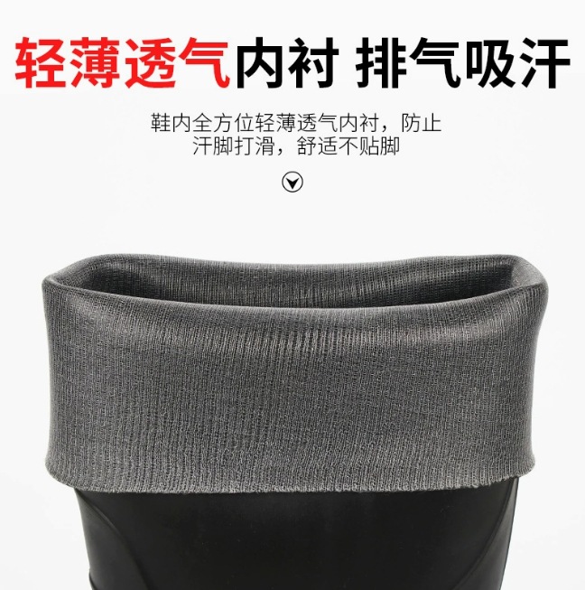 하이탑 레인부츠, 방수화, 오일/산/알칼리 방지, 미끄럼 방지, 내마모성, 올블랙, 편안함, 아웃도어, 충격 방지, 내마모성