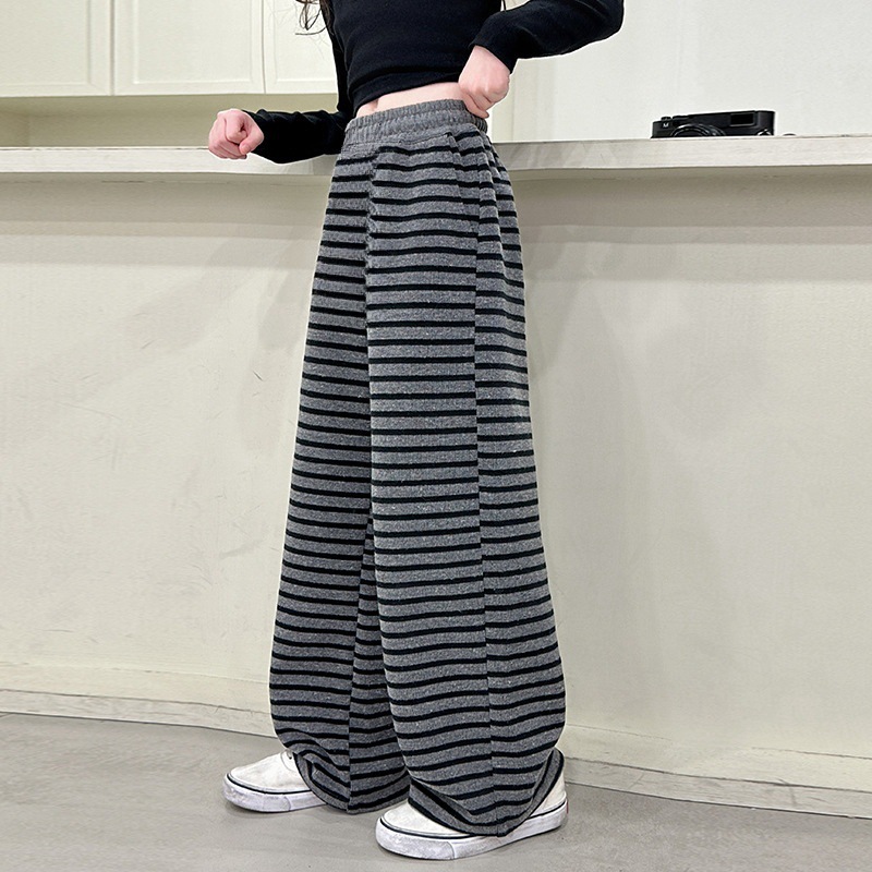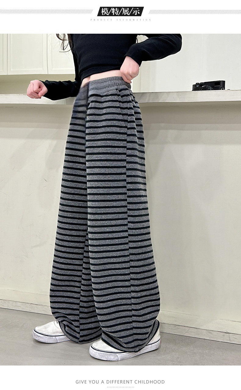 여아 바지, 봄 여름 캐주얼 바지, 찹쌀 스트라이프 스트레이트 팬츠, 아우터 바지, 중대형 아동 슬림 와이드 팬츠, 하이웨이스트