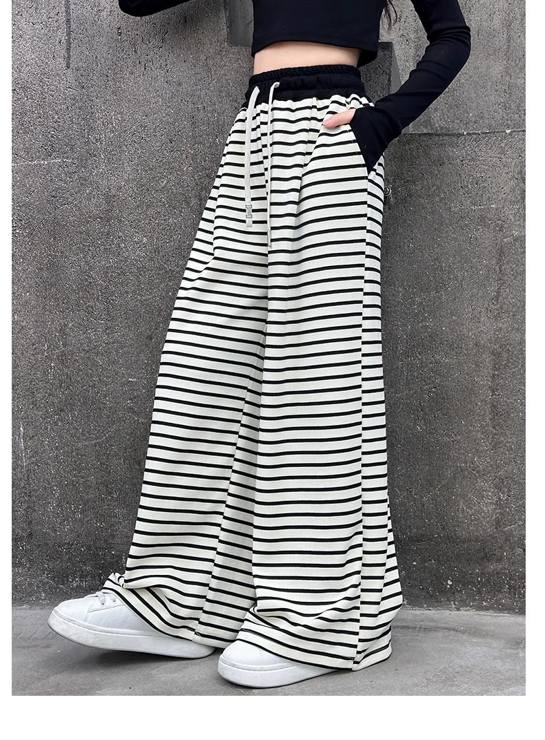 여아 바지, 봄 여름 캐주얼 바지, 찹쌀 스트라이프 스트레이트 팬츠, 아우터 바지, 중대형 아동 슬림 와이드 팬츠, 하이웨이스트스토어 가기
