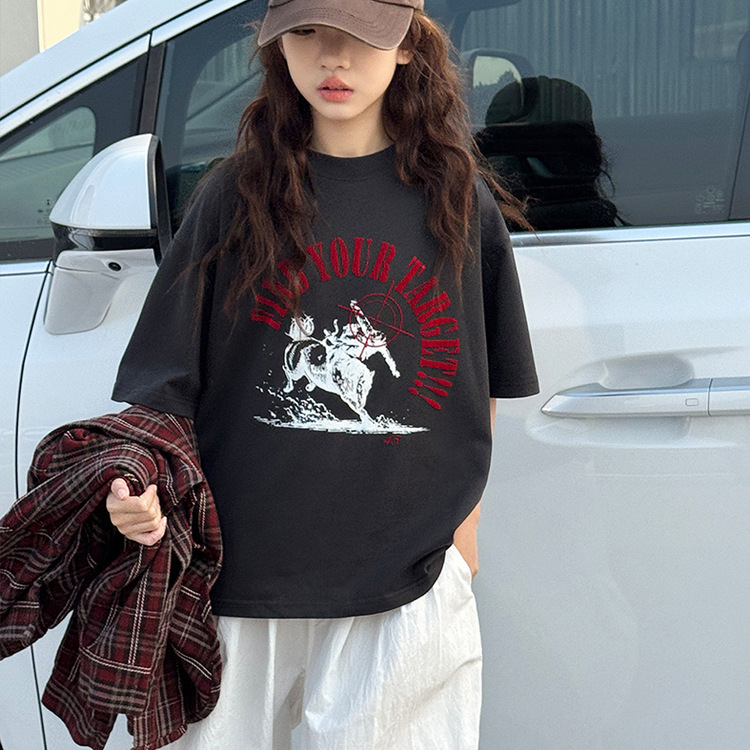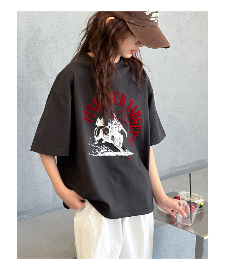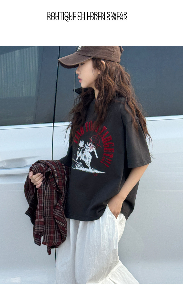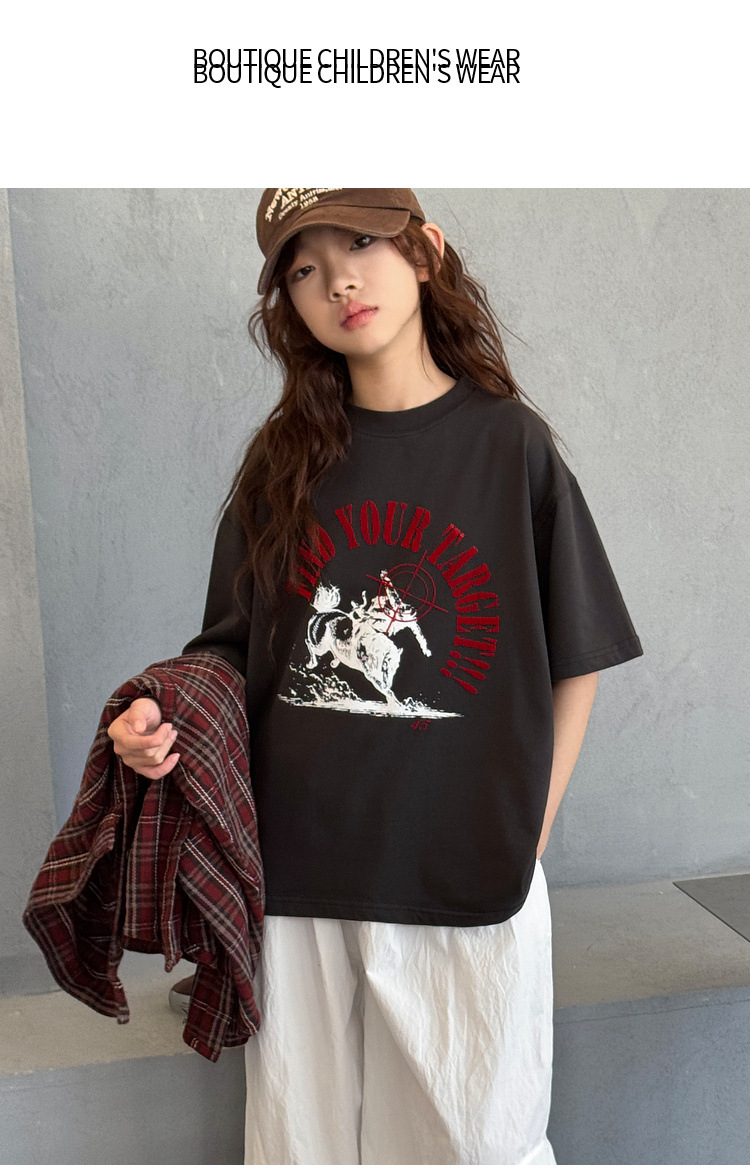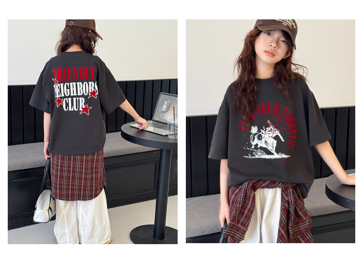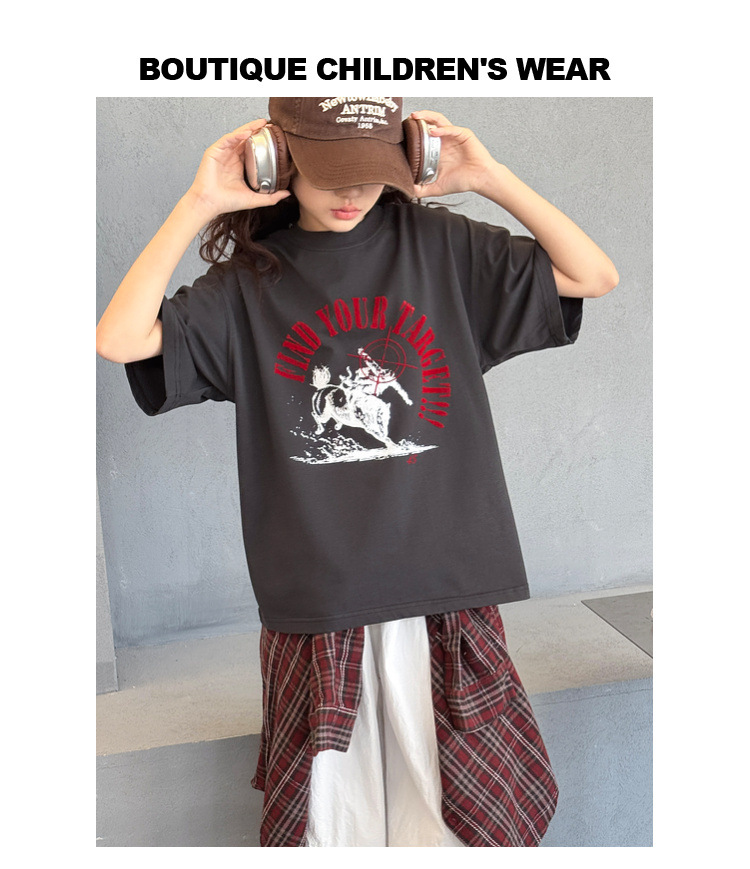 여아 반팔 티셔츠 여름 2026 신상 아동용 만화 프린트 탑 미국식 루즈핏 큰아동용 반팔 베이스 티셔츠스토어 가기