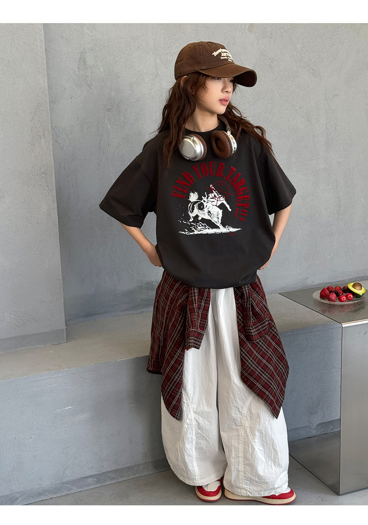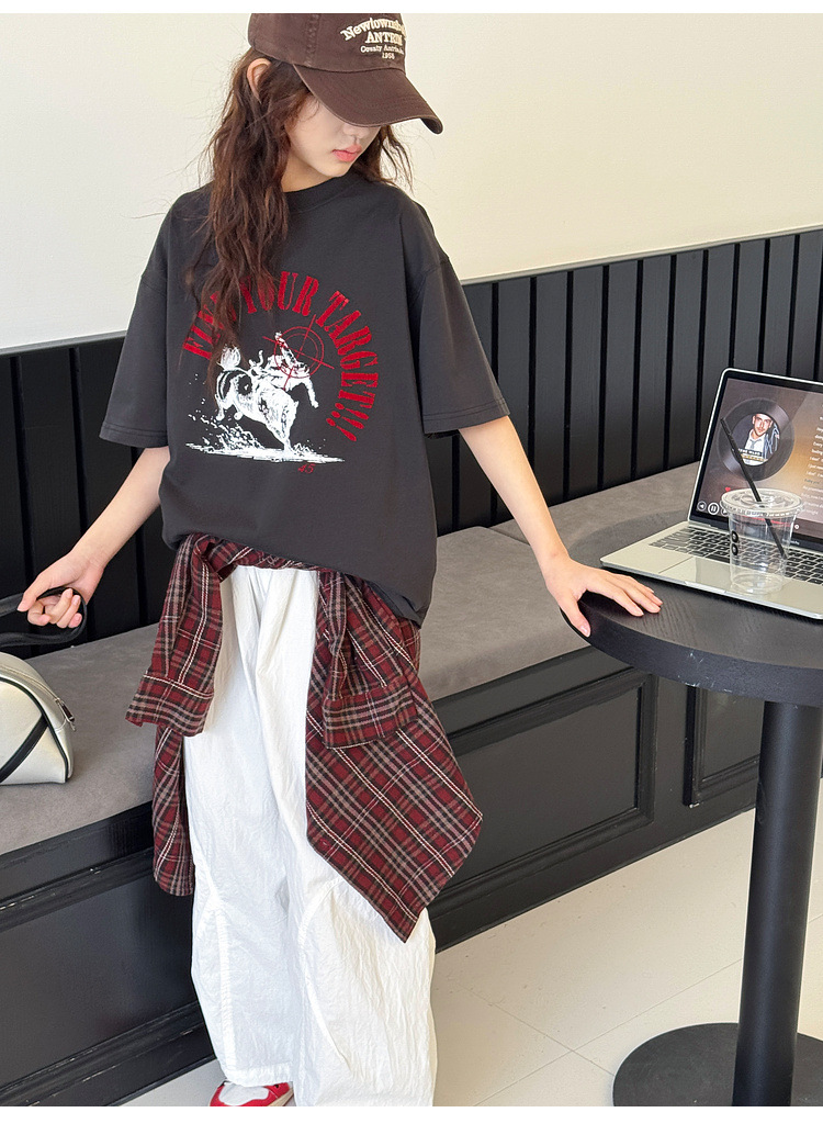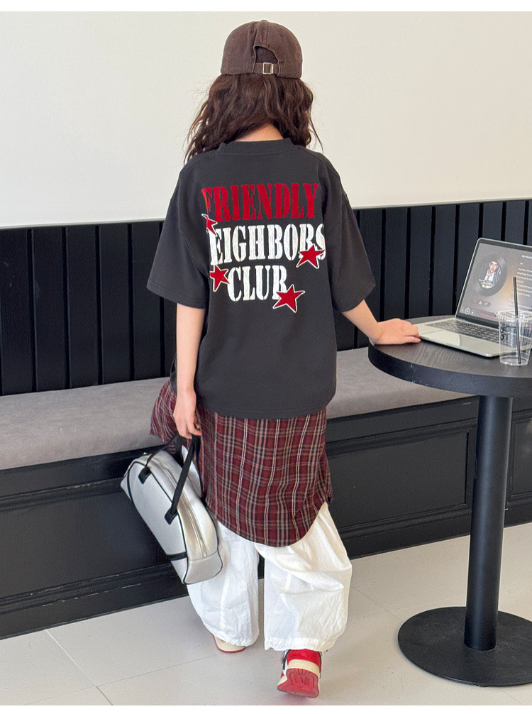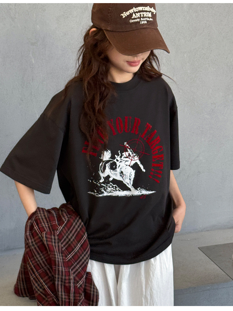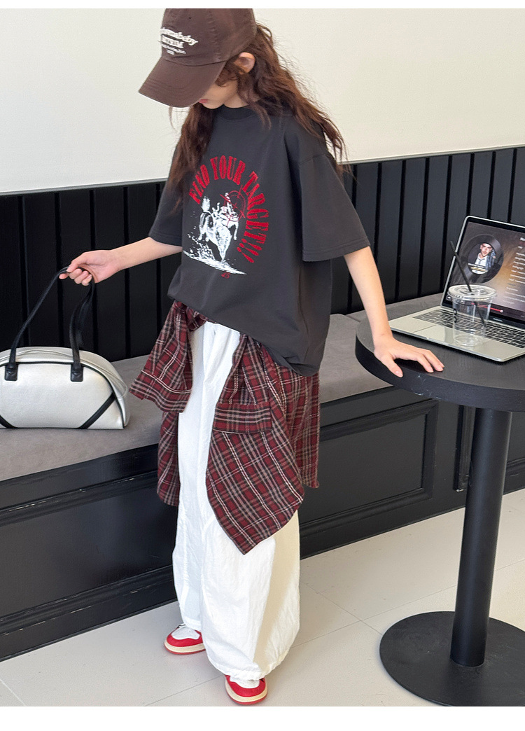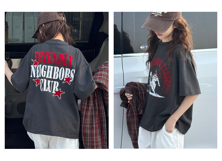 여아 반팔 티셔츠 여름 2026 신상 아동용 만화 프린트 탑 미국식 루즈핏 큰아동용 반팔 베이스 티셔츠스토어 가기