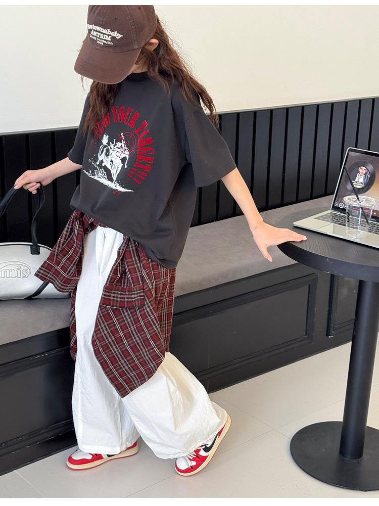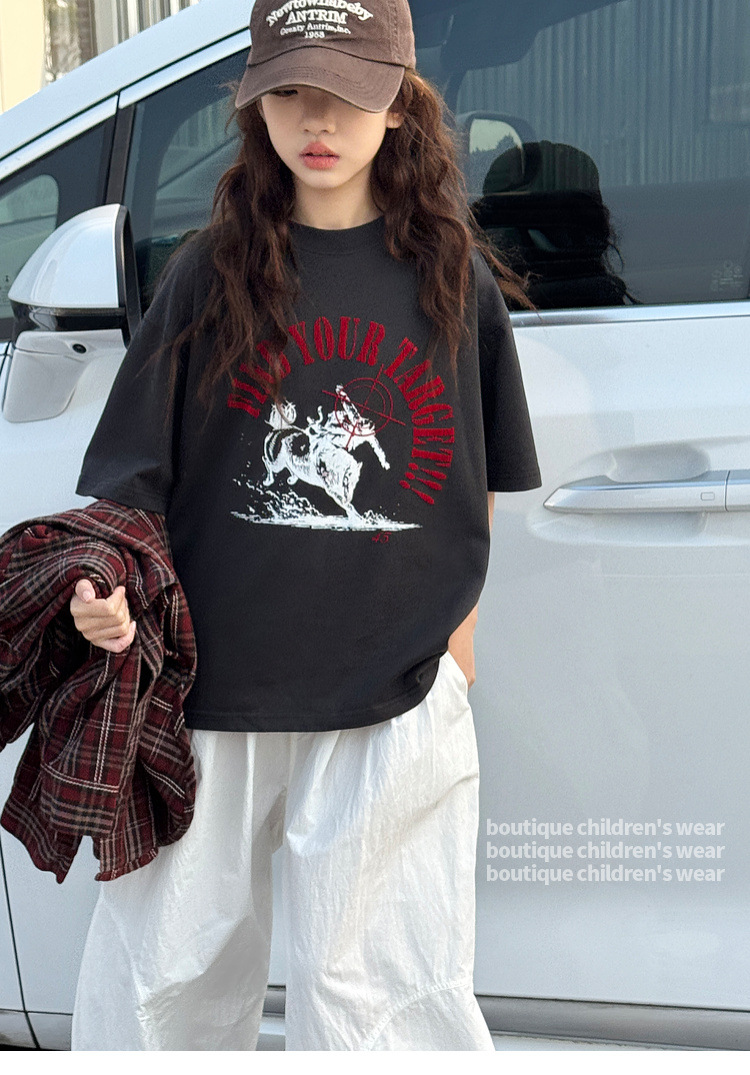 여아 반팔 티셔츠 여름 2026 신상 아동용 만화 프린트 탑 미국식 루즈핏 큰아동용 반팔 베이스 티셔츠