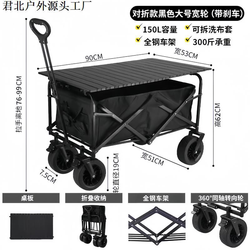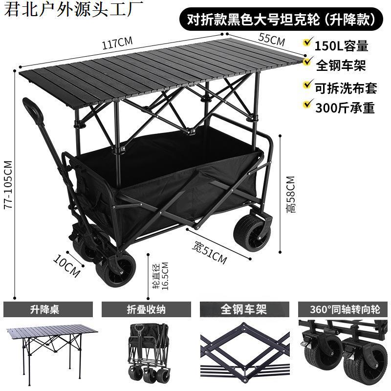 Junbei 야외 넥타이 접히는 캠핑 피크닉 캠핑 크로스 국경 스톨 자동차 휴대용 트롤리 트레일러 캠핑