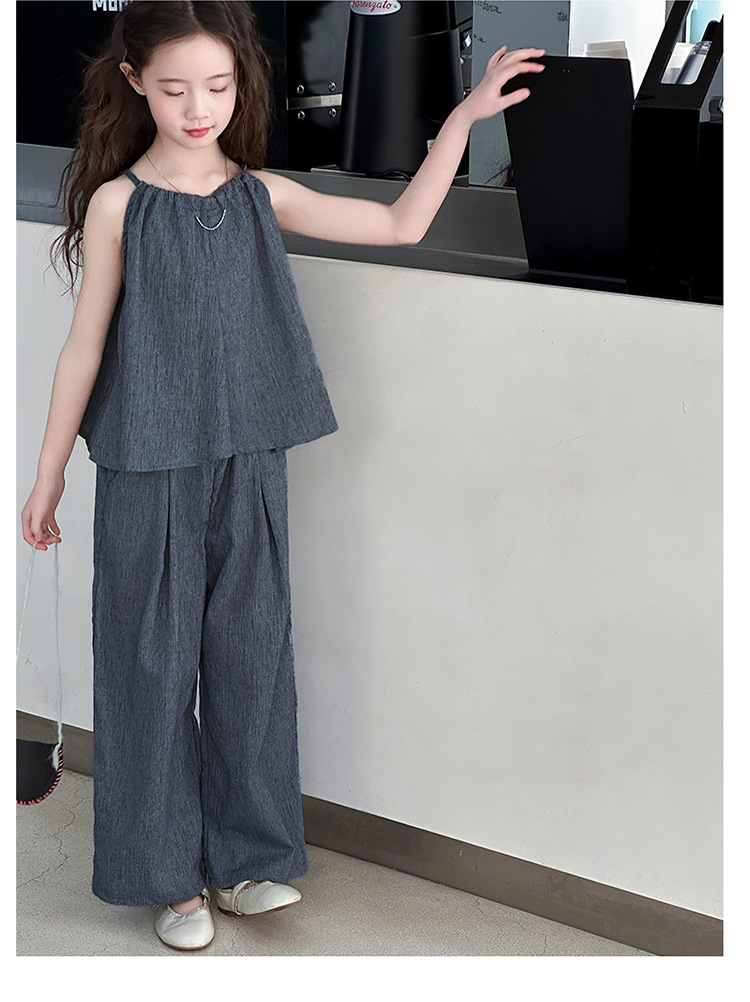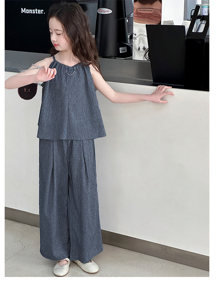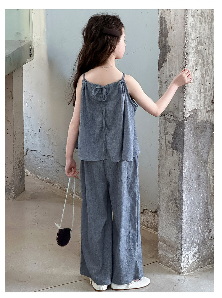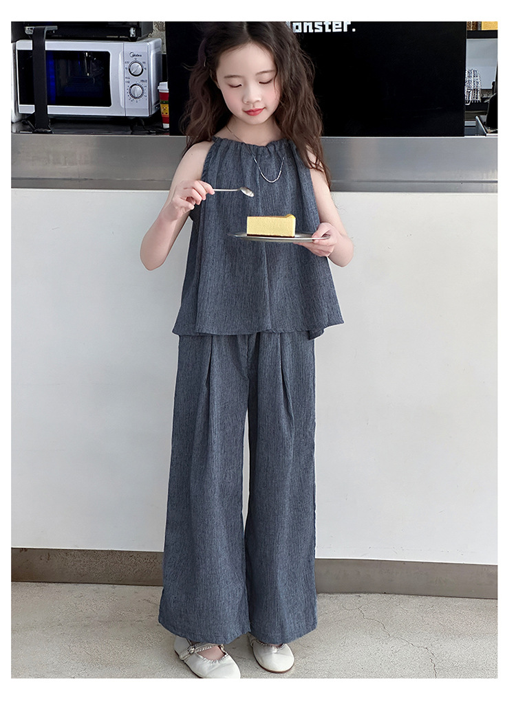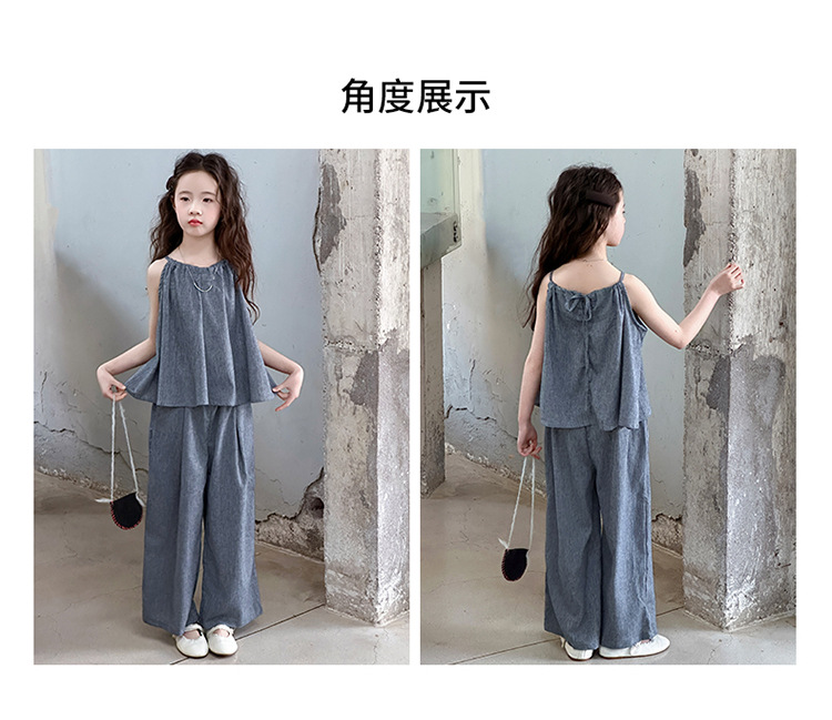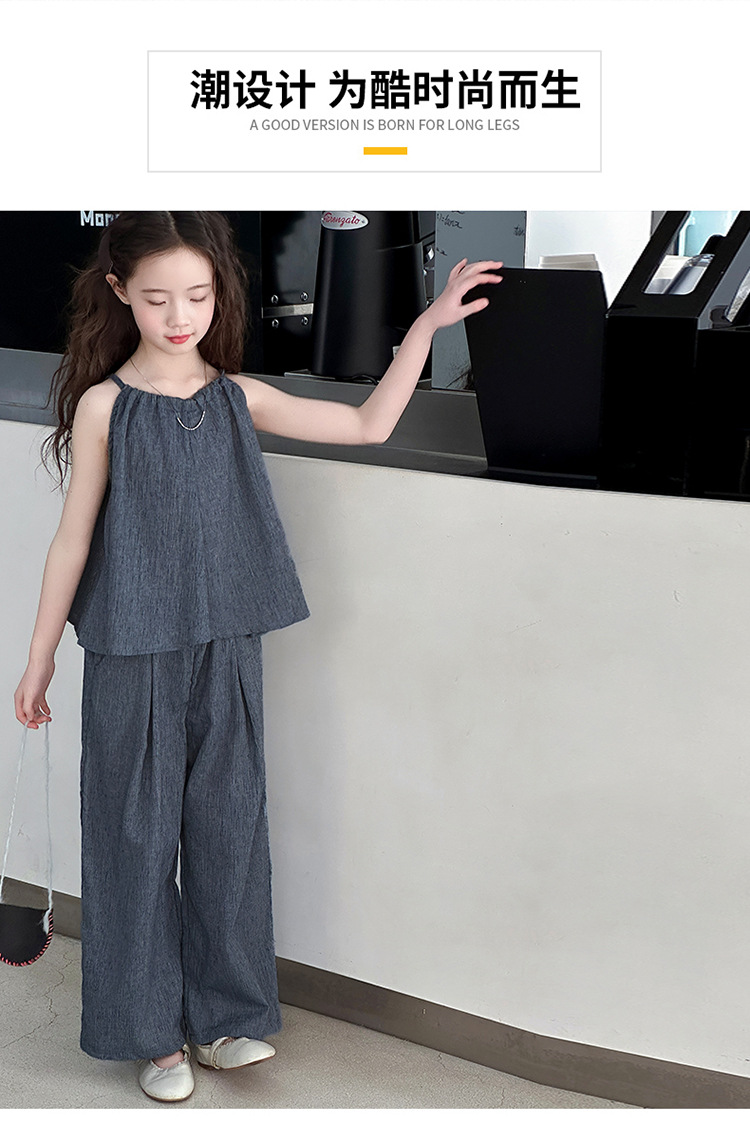 소녀 여름 대마 면화 세트 2025 새로운 한국 스타일 중대형 어린이 캐주얼 민소매 넓은 다리 바지 투피스 트렌디스토어 가기