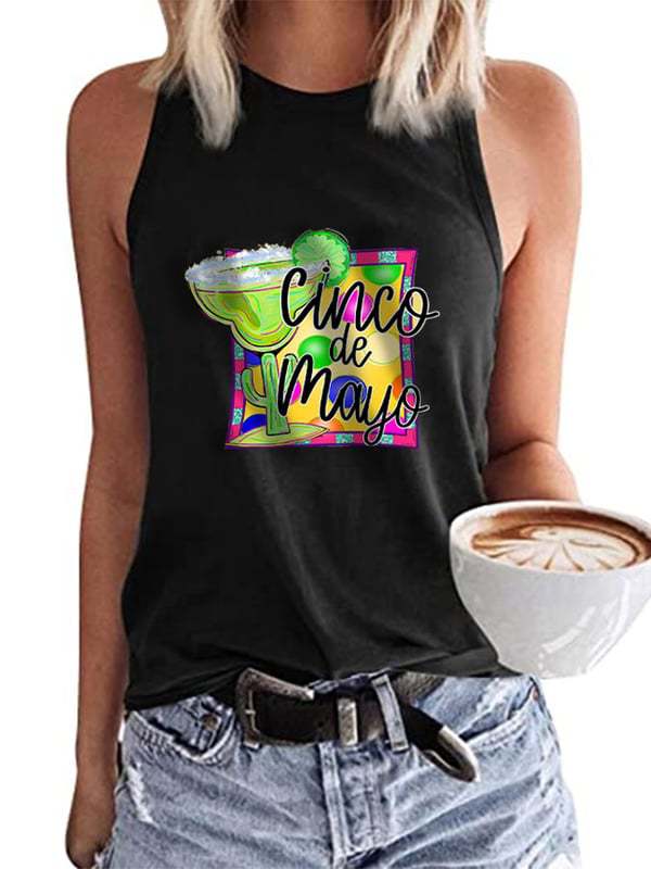 유럽과 미국 국경 아마존 독립 역 3D 디지털 인쇄 편지 시리즈 여성 둥근 목 조끼 공장 직접 판매스토어 가기