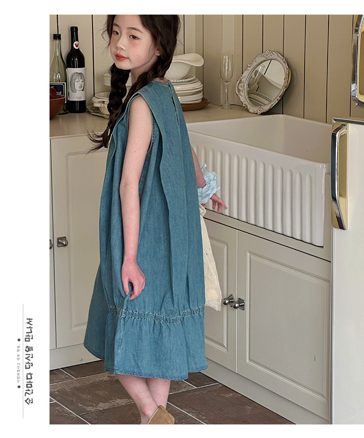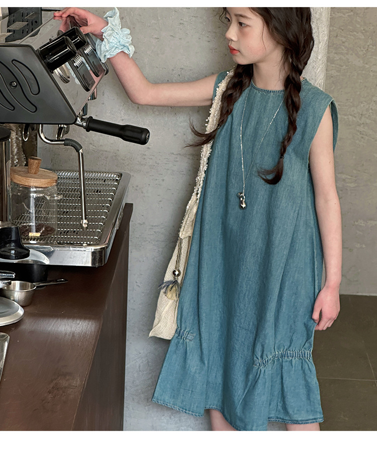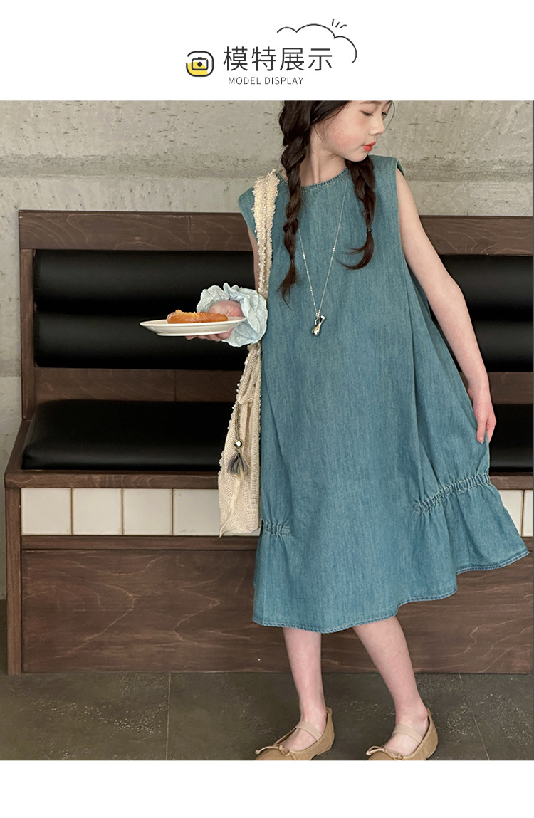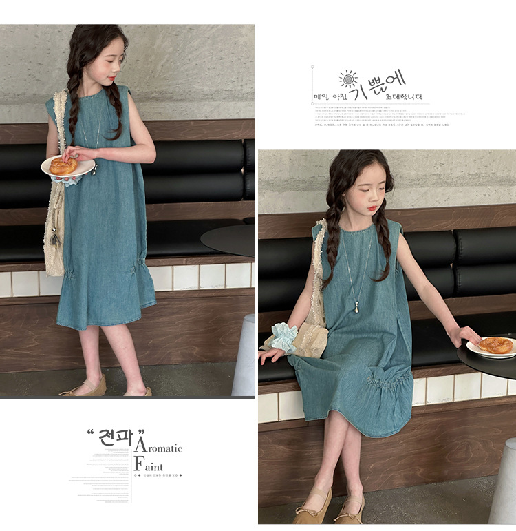 소녀 원피스 여름 2025 새로운 어린이 서양식 큰 어린이 여름 원피스 텐셀 얇은 민소매 조끼 데님 스커트스토어 가기