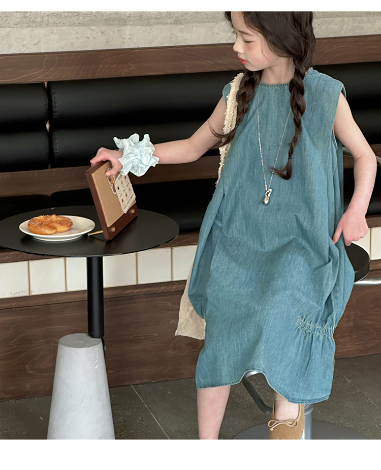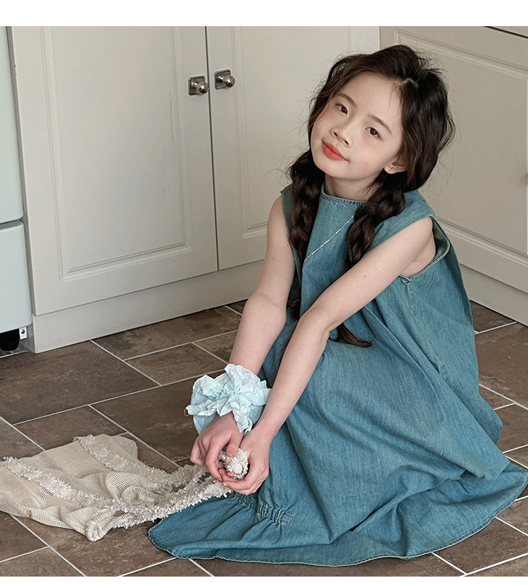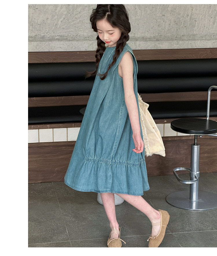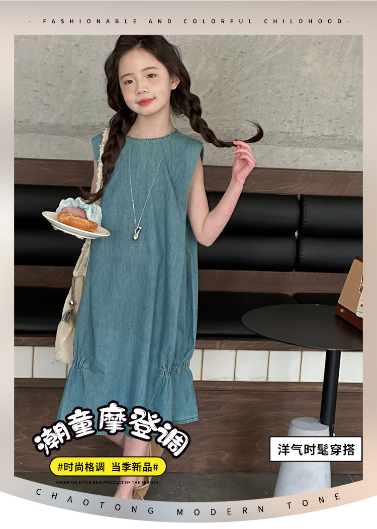 소녀 원피스 여름 2025 새로운 어린이 서양식 큰 어린이 여름 원피스 텐셀 얇은 민소매 조끼 데님 스커트