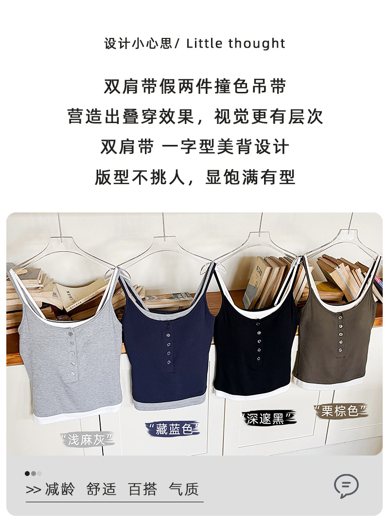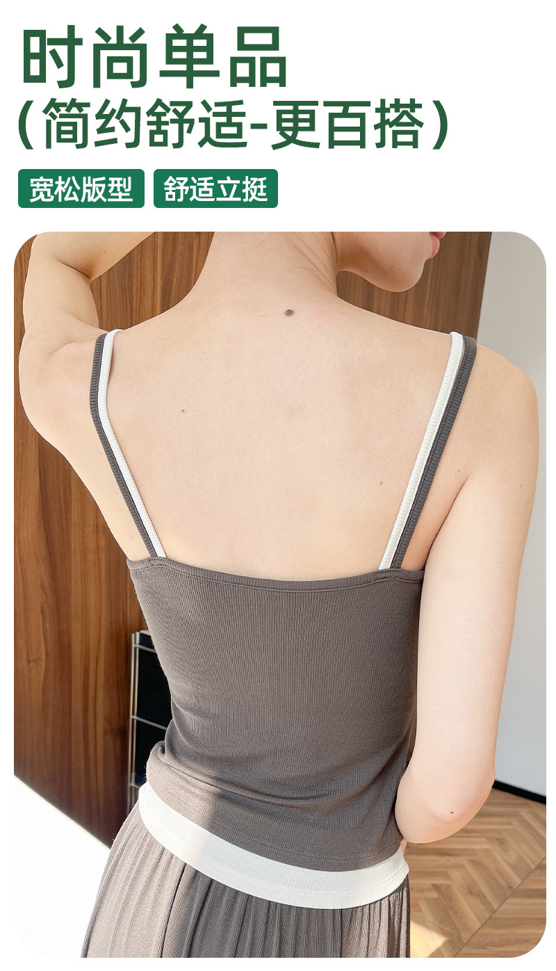 제로 카본 모달 대비 버클 컵 슬링 가짜 2 피스 라운드 넥 슬리밍 부드럽고 편안한 세련된 올 매치 조끼스토어 가기