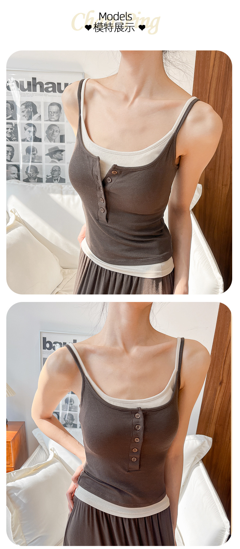 제로 카본 모달 대비 버클 컵 슬링 가짜 2 피스 라운드 넥 슬리밍 부드럽고 편안한 세련된 올 매치 조끼