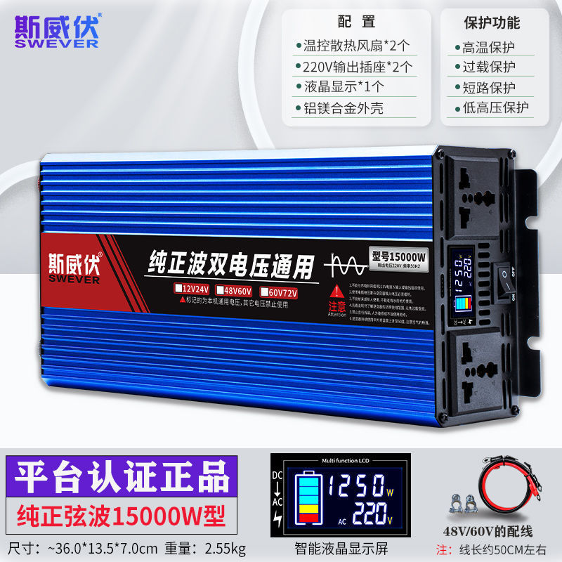 • 60V 및 72V ~ 220V - 범용 모델 - 사인파 15000W - LCD 지능형 절전 모델