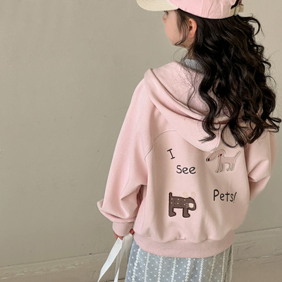 小红鱼女童外套2025新款韩版春季儿童开衫卫衣洋气连帽印花拉链衫 RMB82.32 立即加购