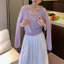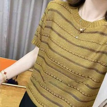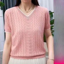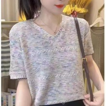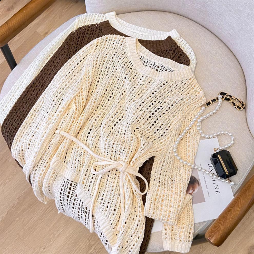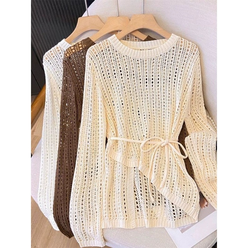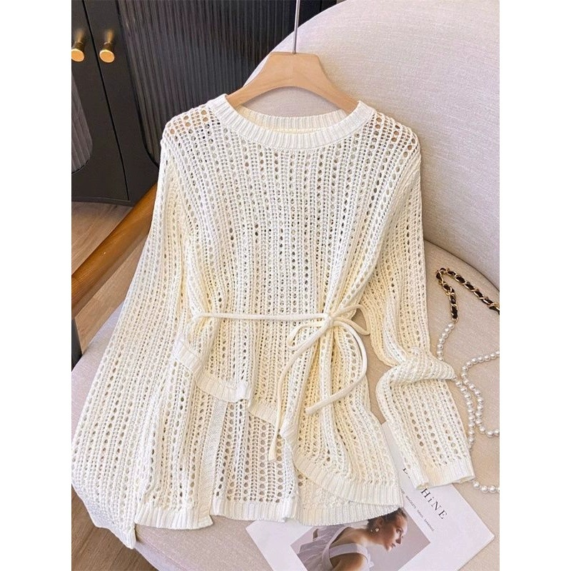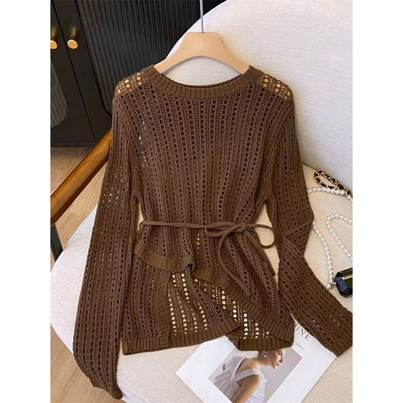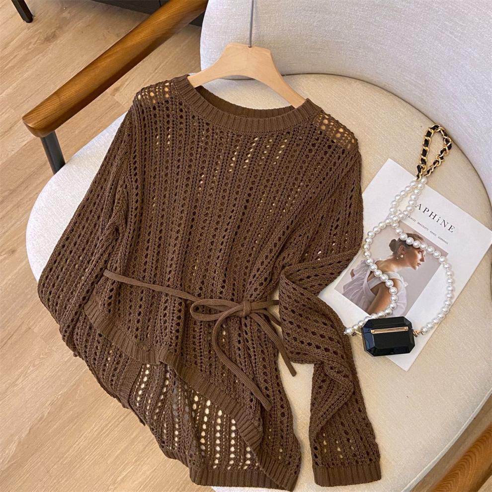 2025 여름 얇은 게으른 스타일 더미 에어컨 외부 블라우스 여성용 라운드 넥 불규칙한 크로 셰 뜨개질 빈 니트 스웨터스토어 가기