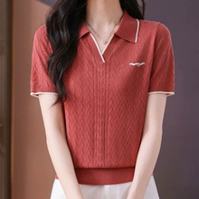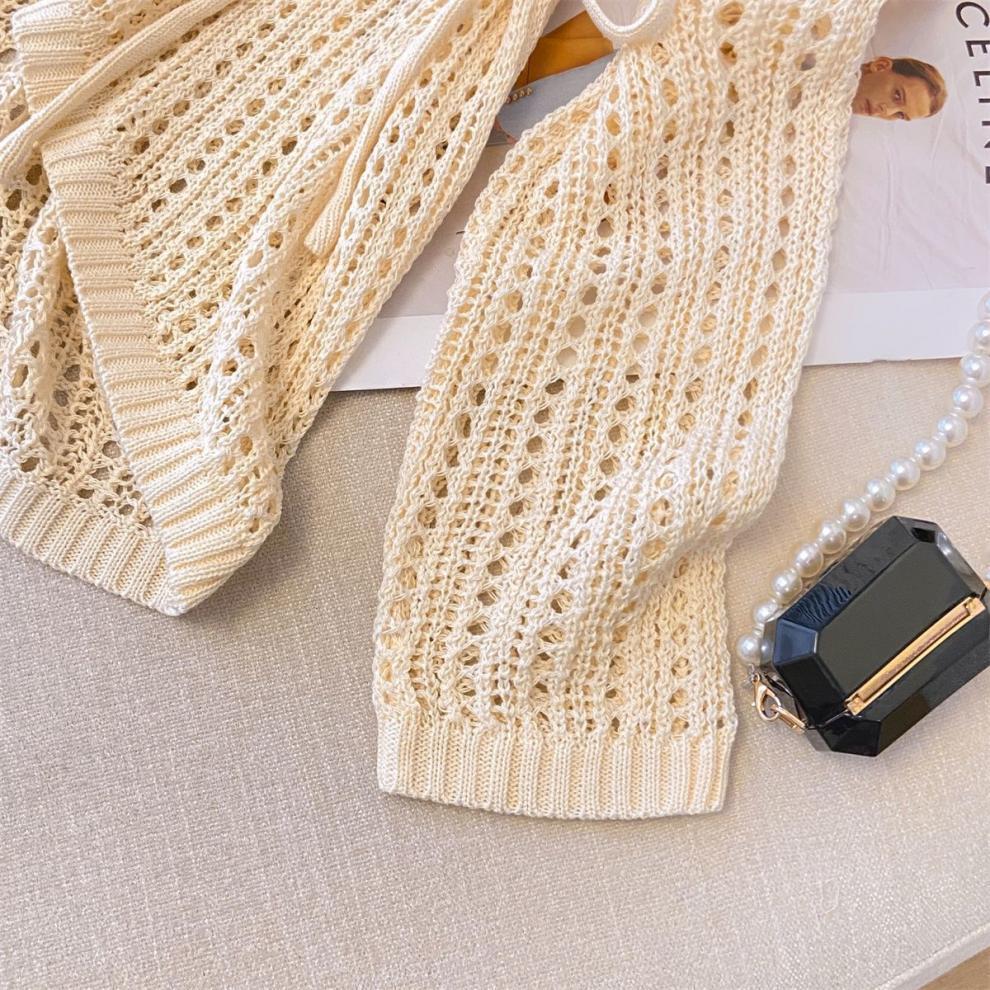 2025 여름 얇은 게으른 스타일 더미 에어컨 외부 블라우스 여성용 라운드 넥 불규칙한 크로 셰 뜨개질 빈 니트 스웨터