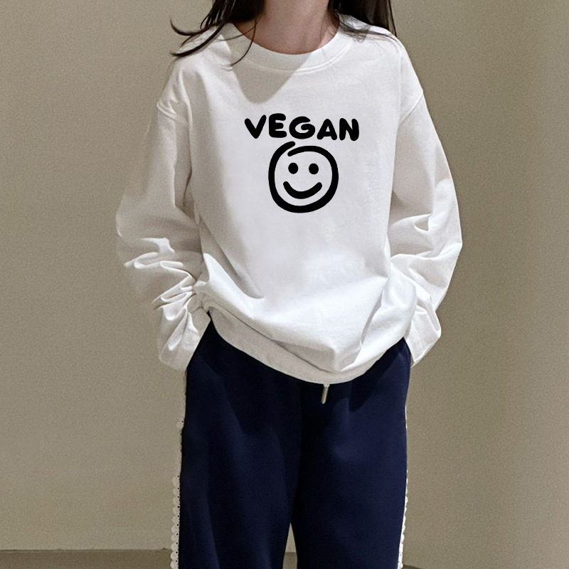 • 긴팔 T-화이트-VEG 웃는 얼굴