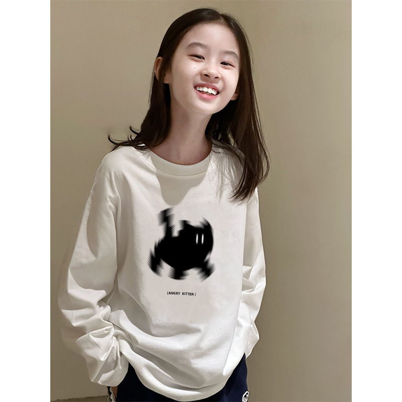 소녀 가을 코튼 긴팔 티셔츠 큰 어린이 패션 소녀의 봄과 가을 만화 인쇄베이스 셔츠 최고 트렌디스토어 가기