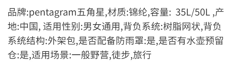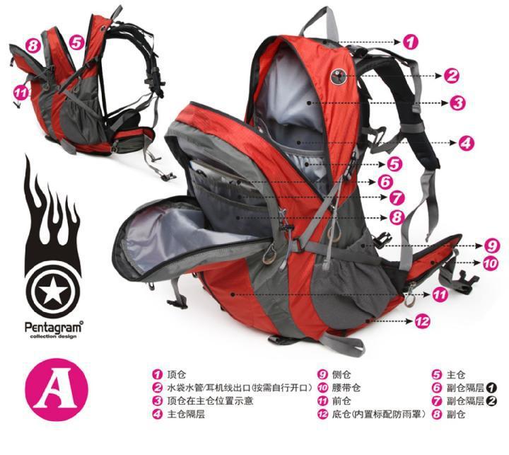 무료 배송 오각형 오각형 별 50L 튀는 등산 가방 여행 어깨