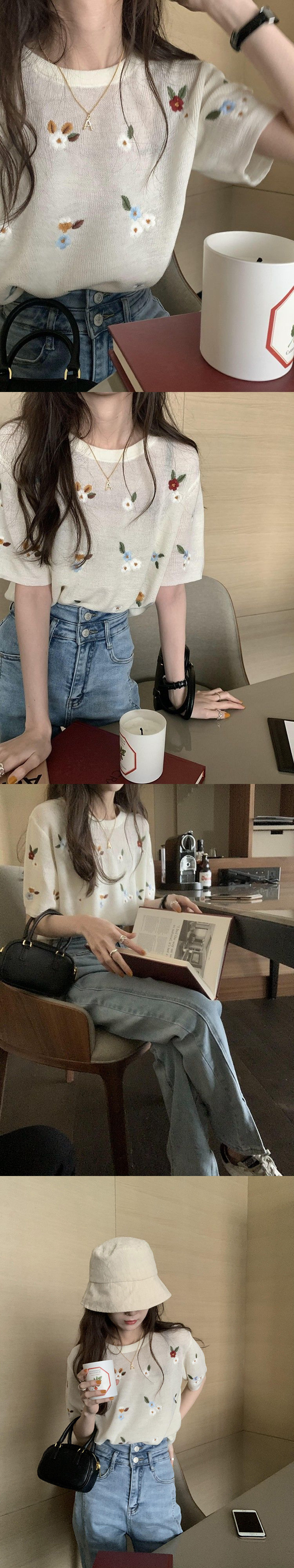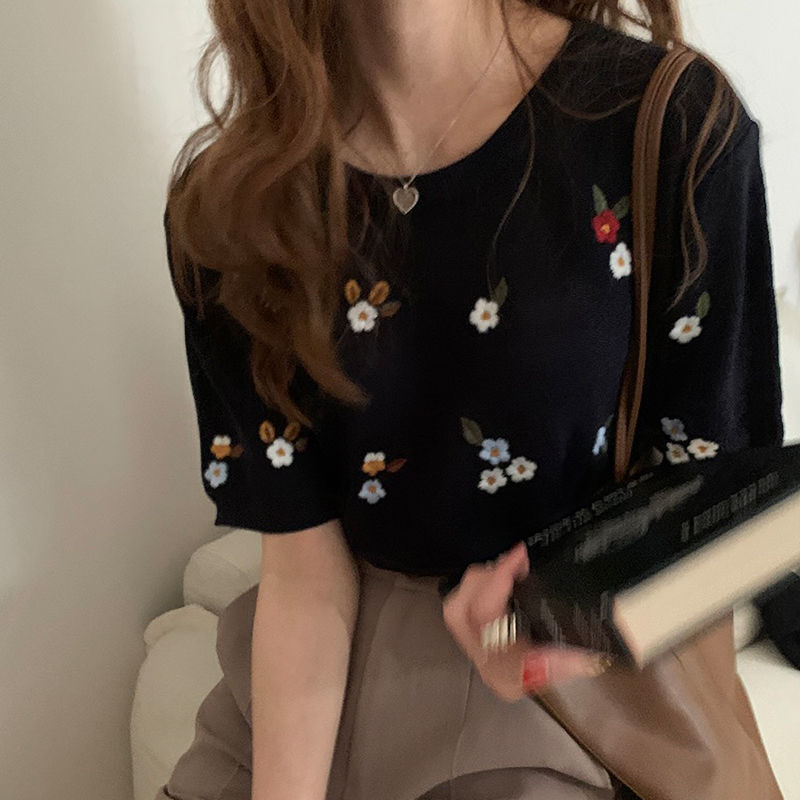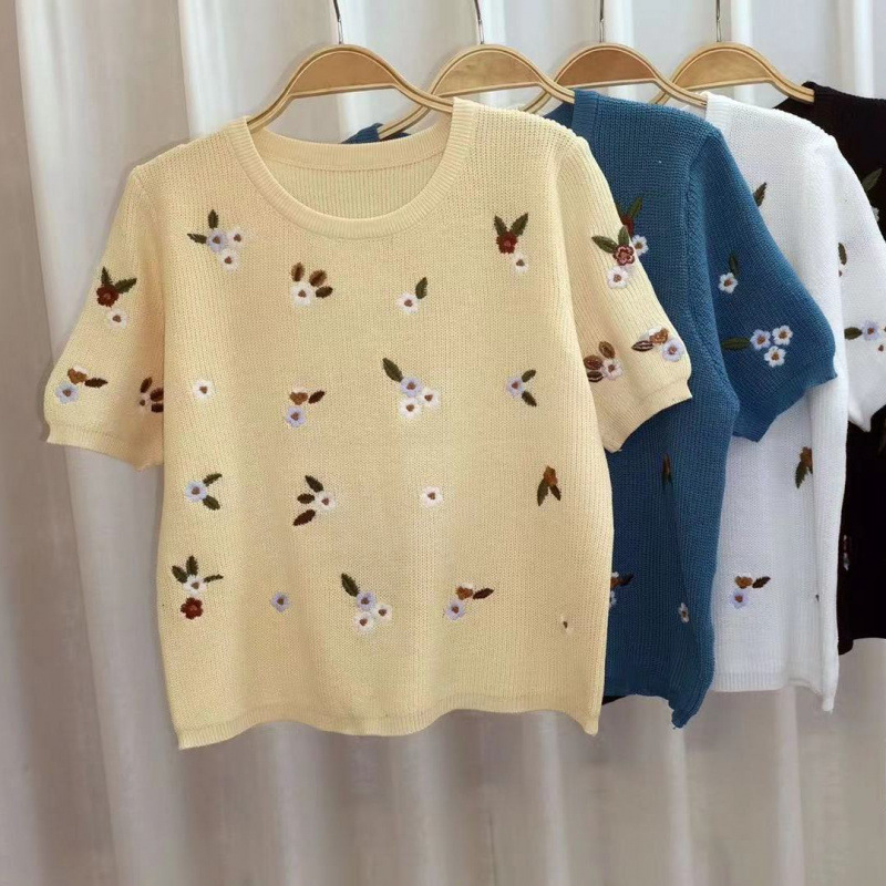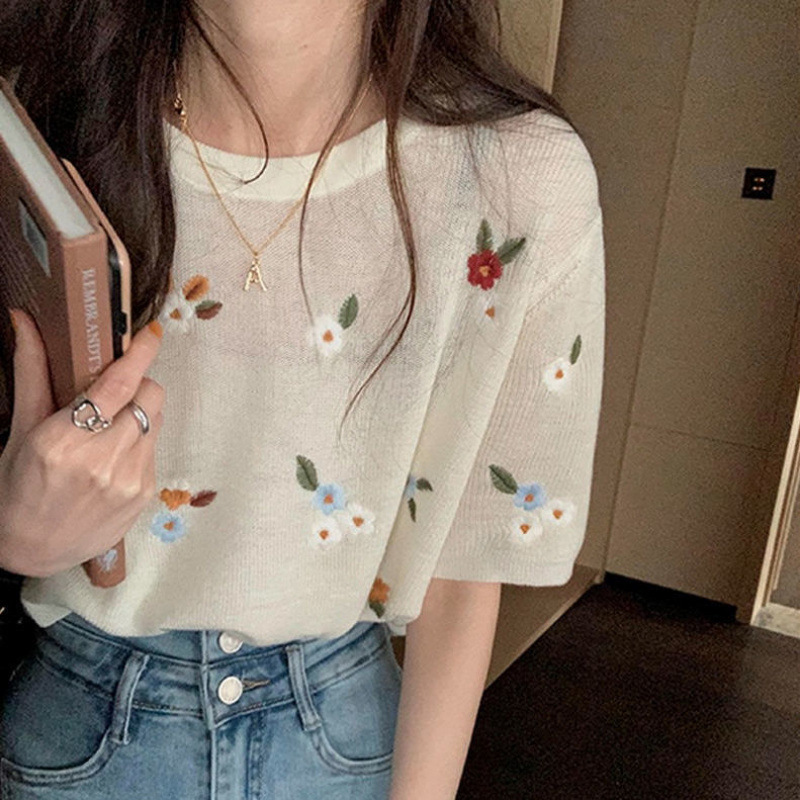 반소매 니트 티셔츠 여성 여름 2025 새로운 한국식 디자인 센스 올매치 루즈 화이트 톱 인스타그램 스타일 트렌디스토어 가기