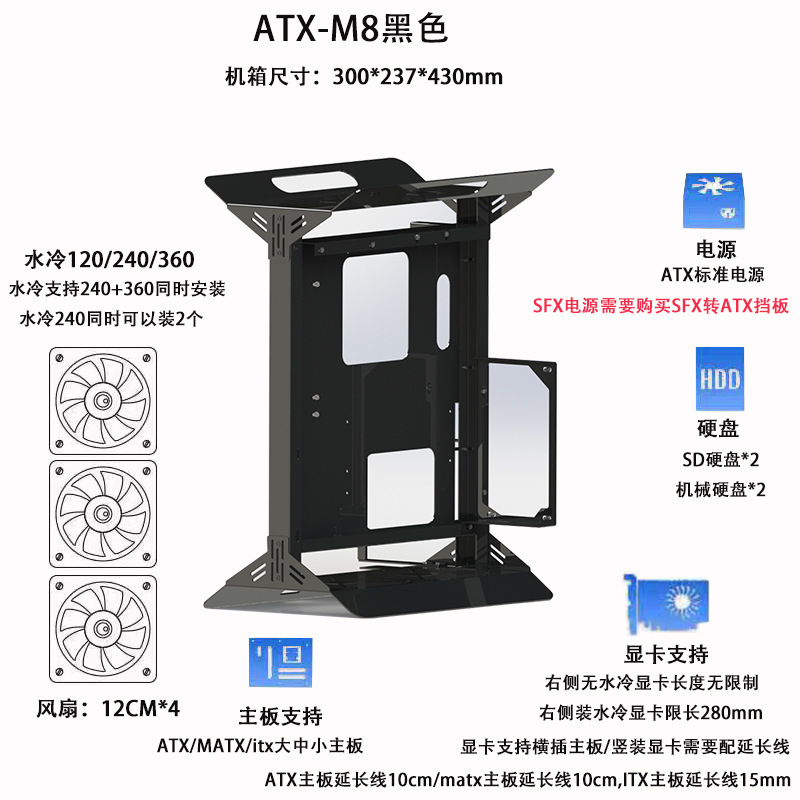 오픈 섀시 240/360 수냉식 공랭식/랙 그래픽 카드 수직 컴퓨터 호스트 작은 섀시