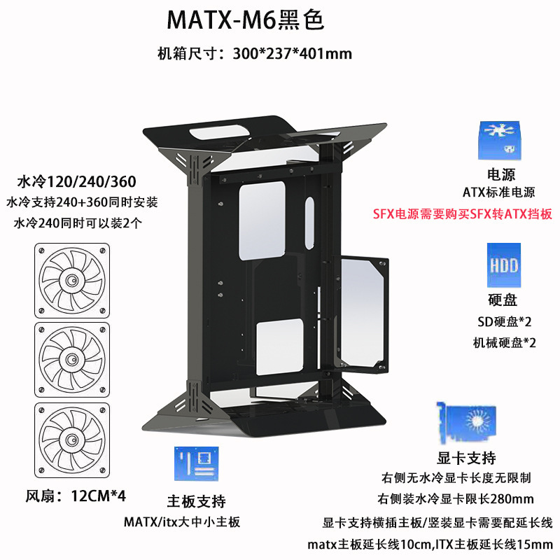 • MATX-X6 검정색 섀시는 중소형 마더보드를 지원합니다.