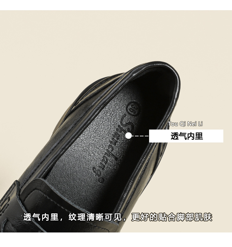 재고 도매 비싼 작은 금화 둥근 발가락 가죽 신발 여성의 두꺼운 밑창 신발 페달 블랙 증가 로퍼 여성
