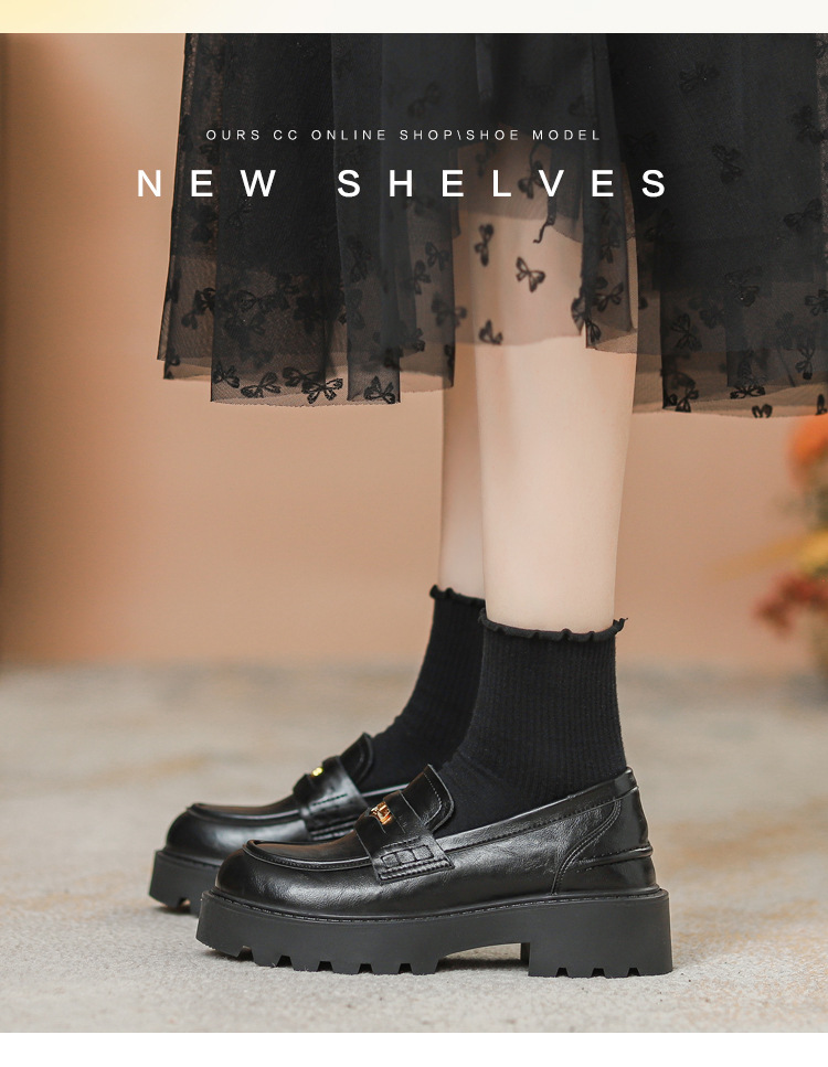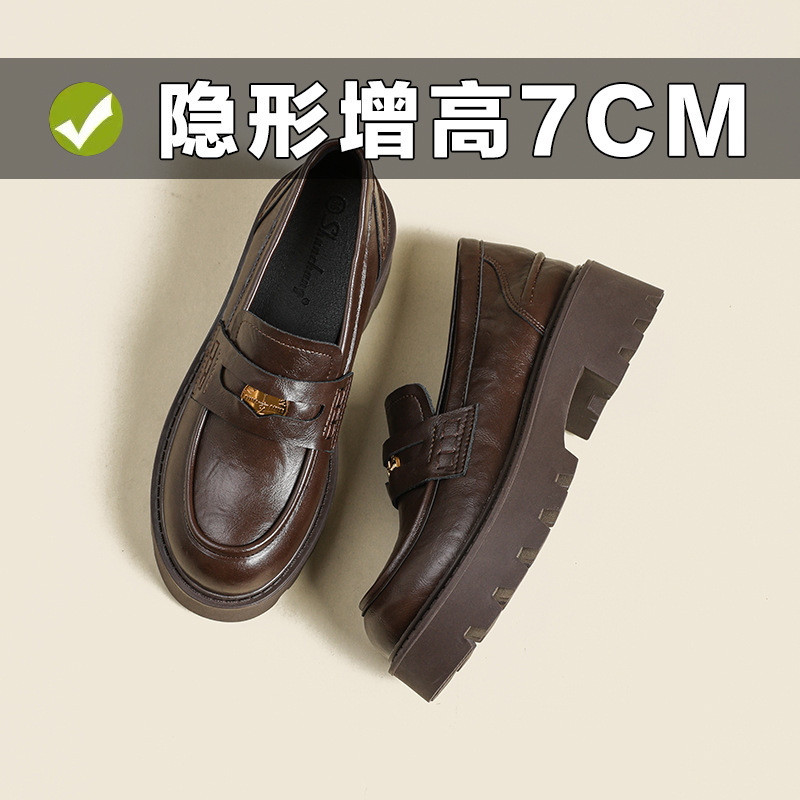 재고 도매 비싼 작은 금화 둥근 발가락 가죽 신발 여성의 두꺼운 밑창 신발 페달 블랙 증가 로퍼 여성스토어 가기