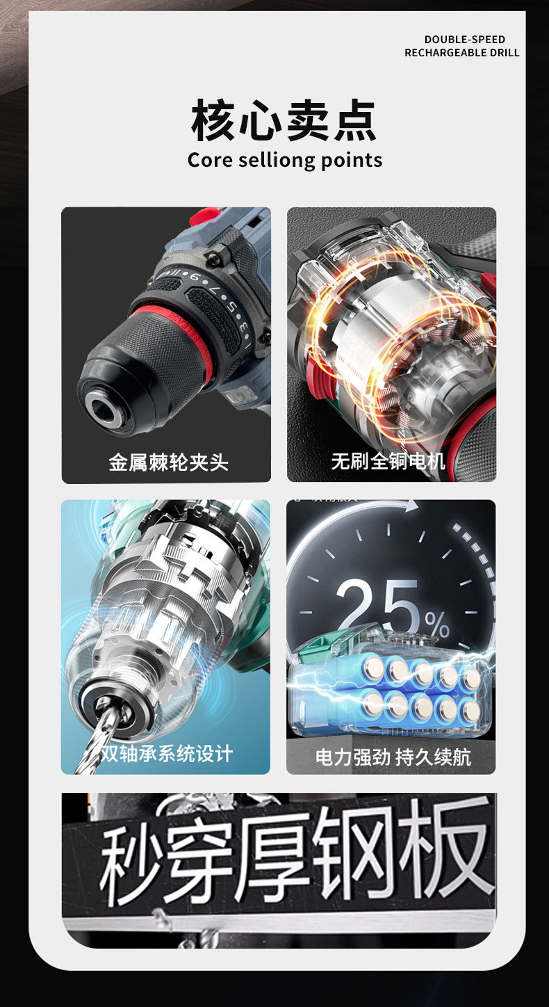 대외 무역 다기능 충전식 손 전기 드릴 브러시리스 모터 작은 강철 대포 리튬 전기 드릴