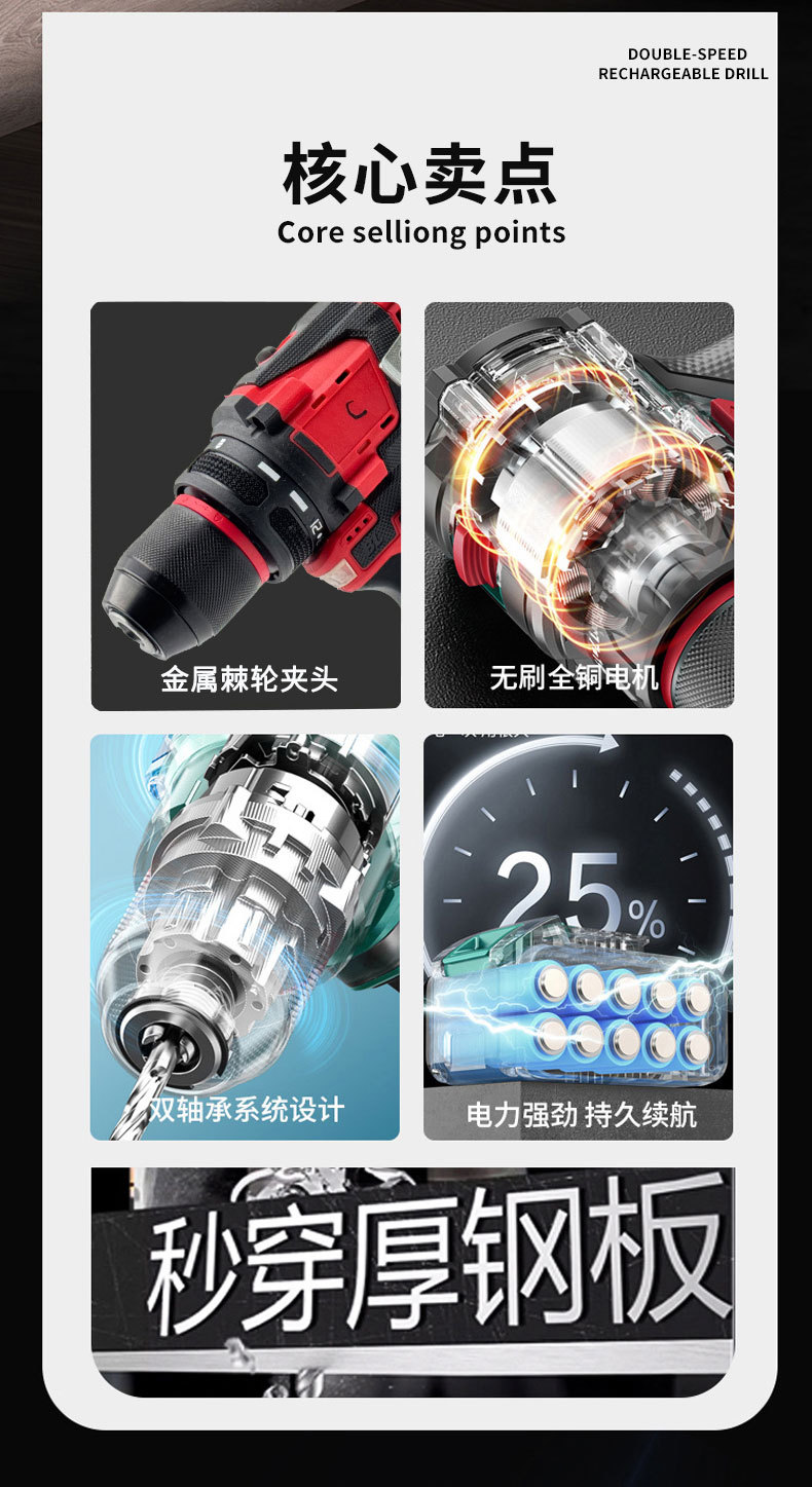 작은 강철 총 브러시리스 리튬 드릴의 충격 손 드릴 교차 국경 공급스토어 가기