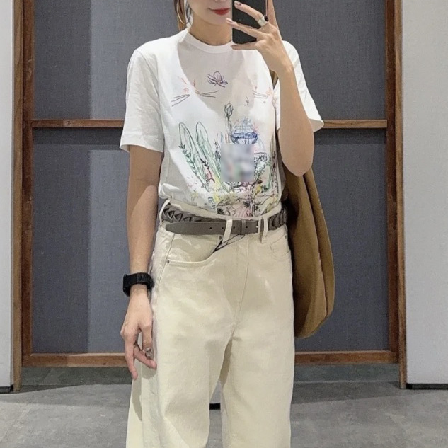 재고 강남 스타일 디자인 자수 티셔츠 여름면 컬러 스티칭 라인 스타일 캐주얼 올 매치 쇼트 슬리브 여성용 의류스토어 가기