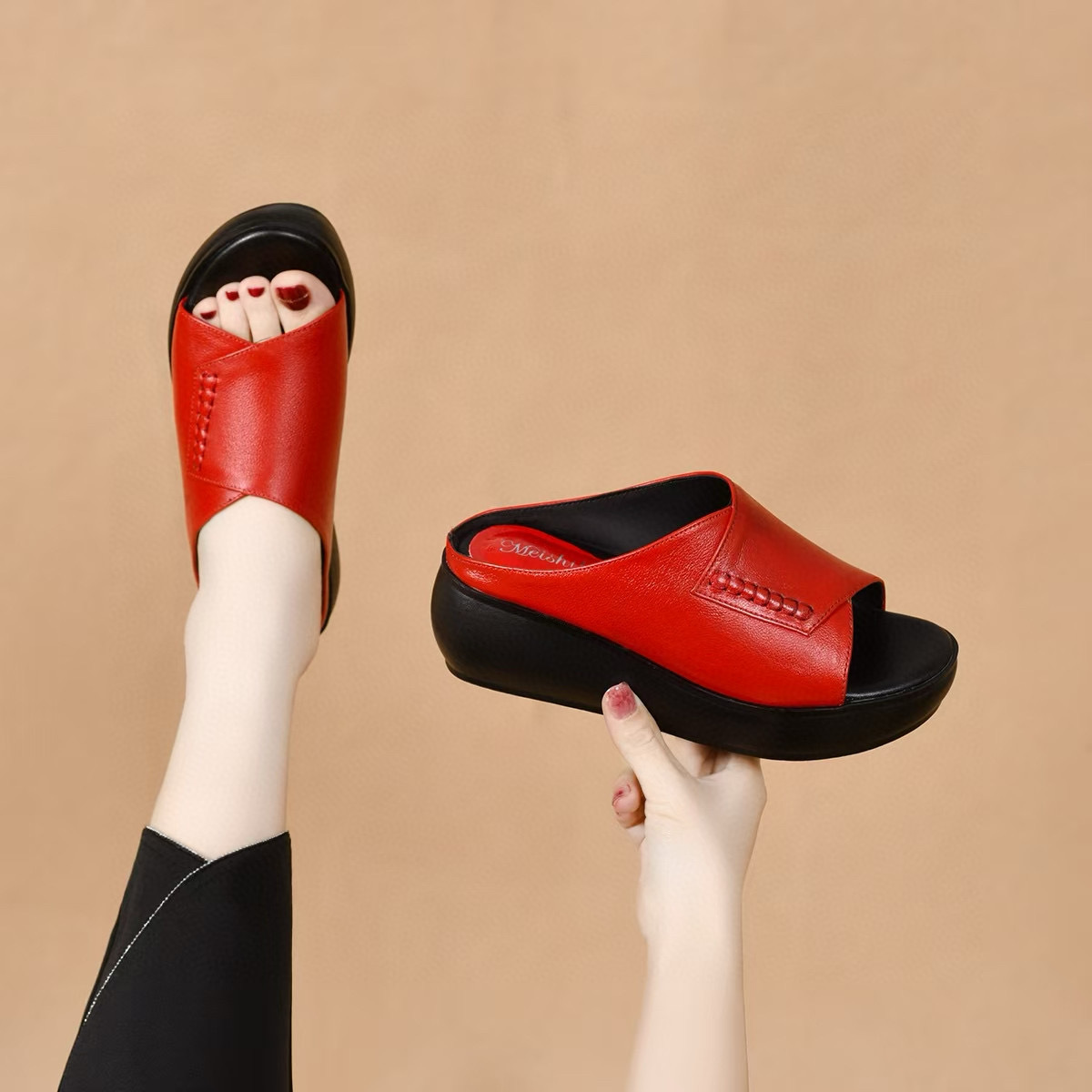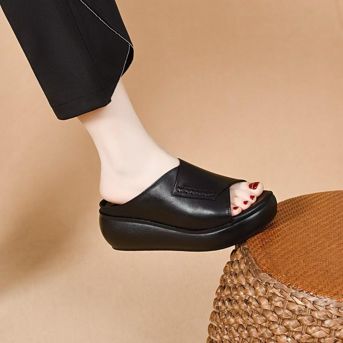 여성용 플랫폼 슬리퍼 외부 착용 2025 여름 생선 입 플랫폼 슬리퍼 오픈 발가락 샌들 헤드 레이어 Cowhide 게으른 플립 플롭스
