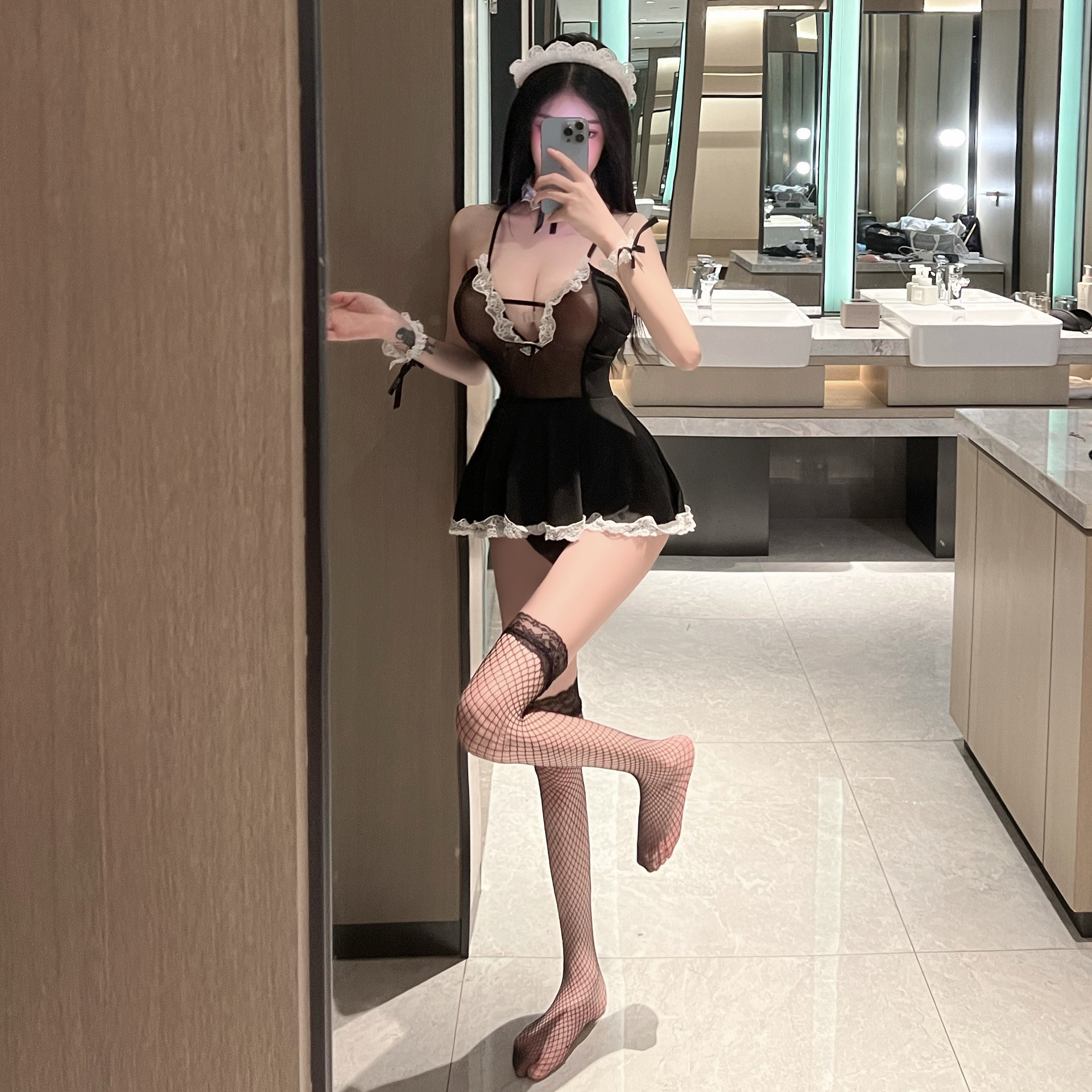 린제리 여성의 섹시한 개인 주택 유혹 유니폼 열정 데이트 놀이 메이드 레이스 백리스 세트스토어 가기